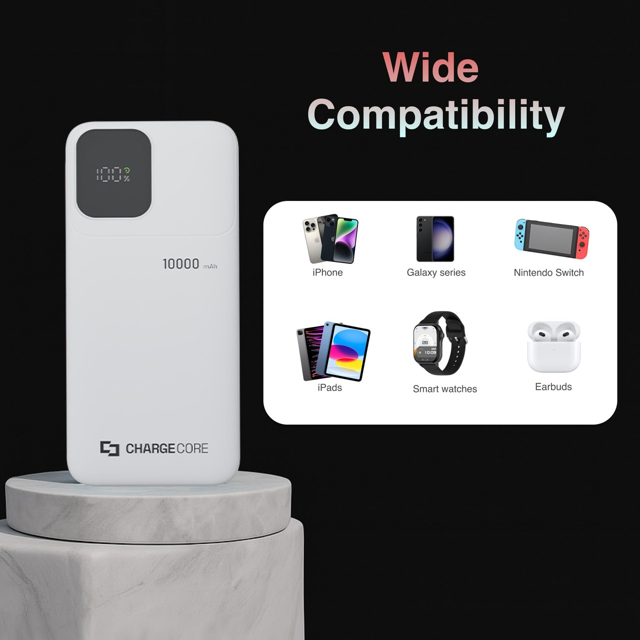 The ChargeCore SafeCharge Max 10000mAh Power Bank White uses advanced LiFePOâ‚„ technology for enhanced safety, durability, and a longer lifespan, delivering reliable power for years.