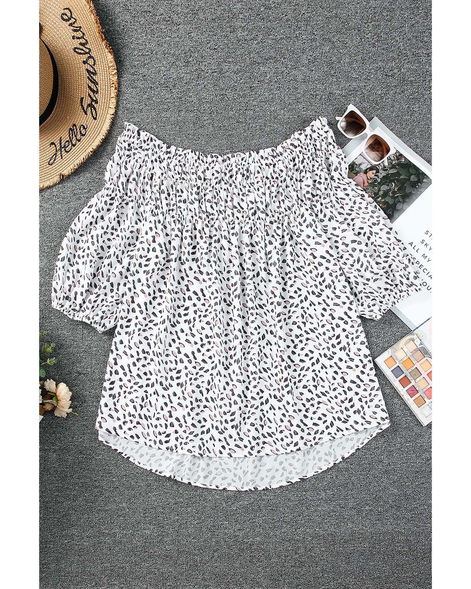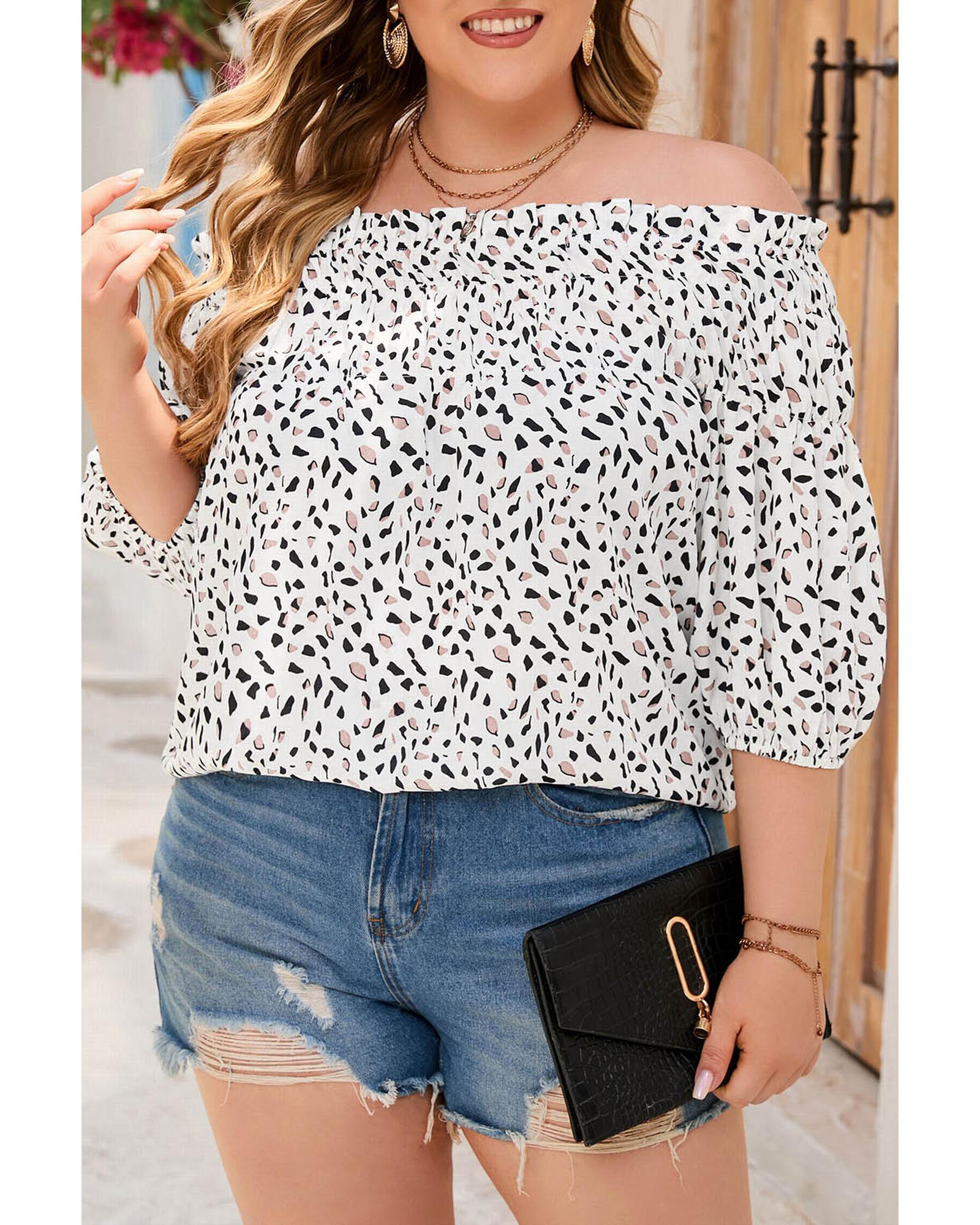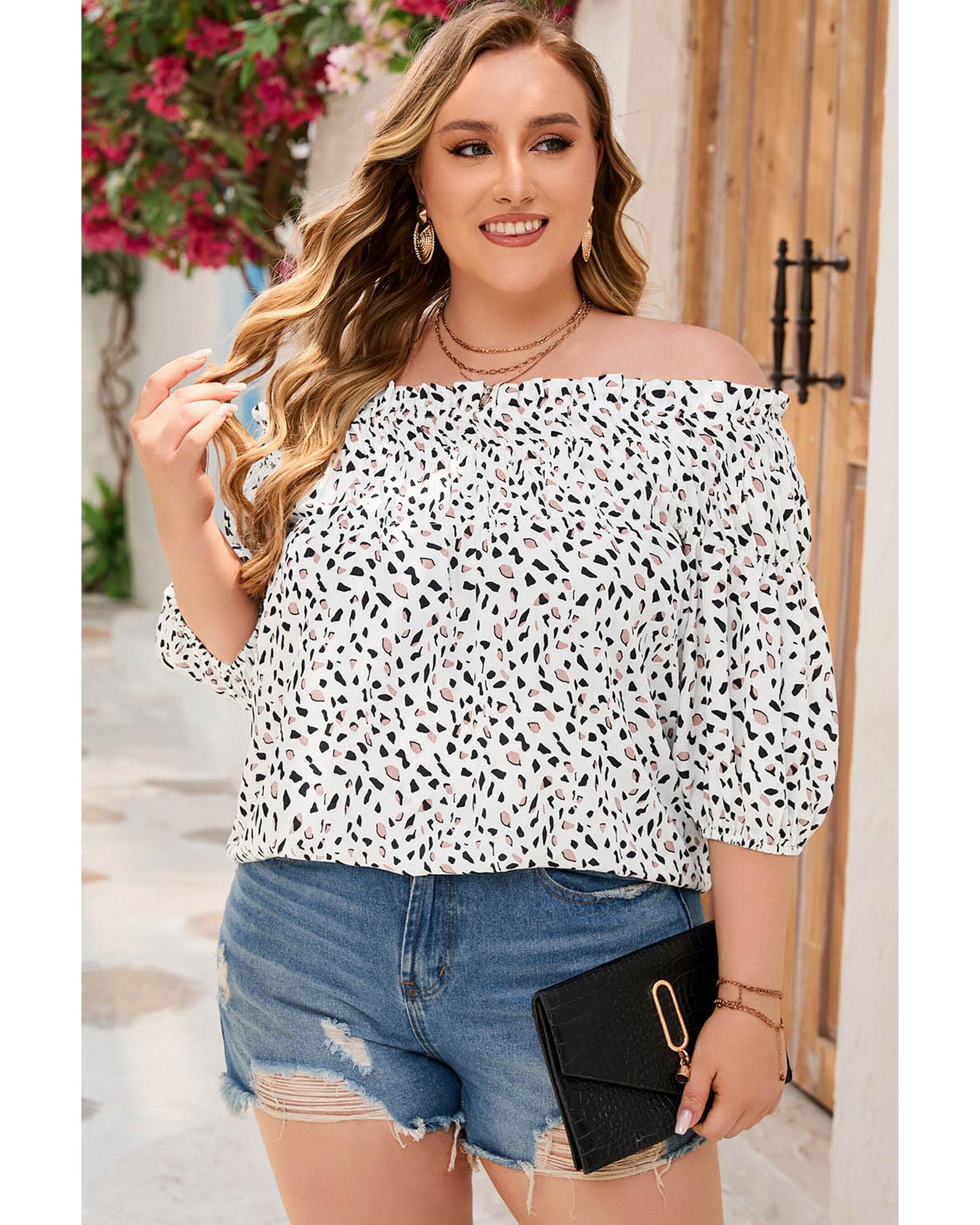 Cheetah Spotted Plus Size Off Shoulder Blouse - 1X