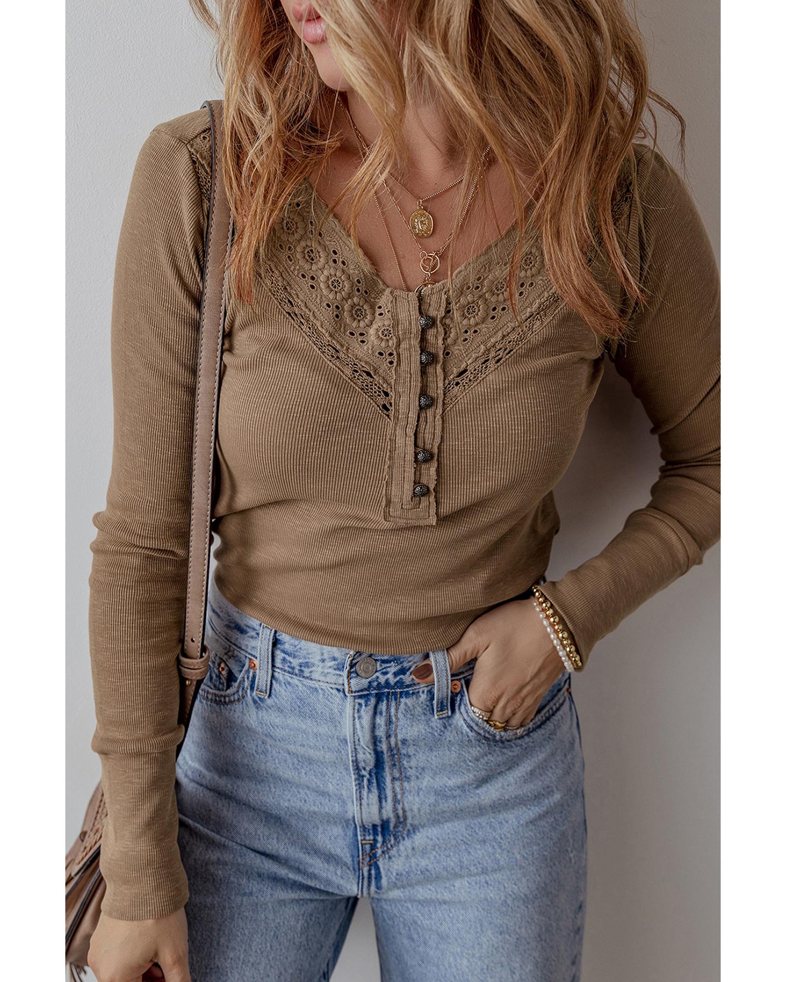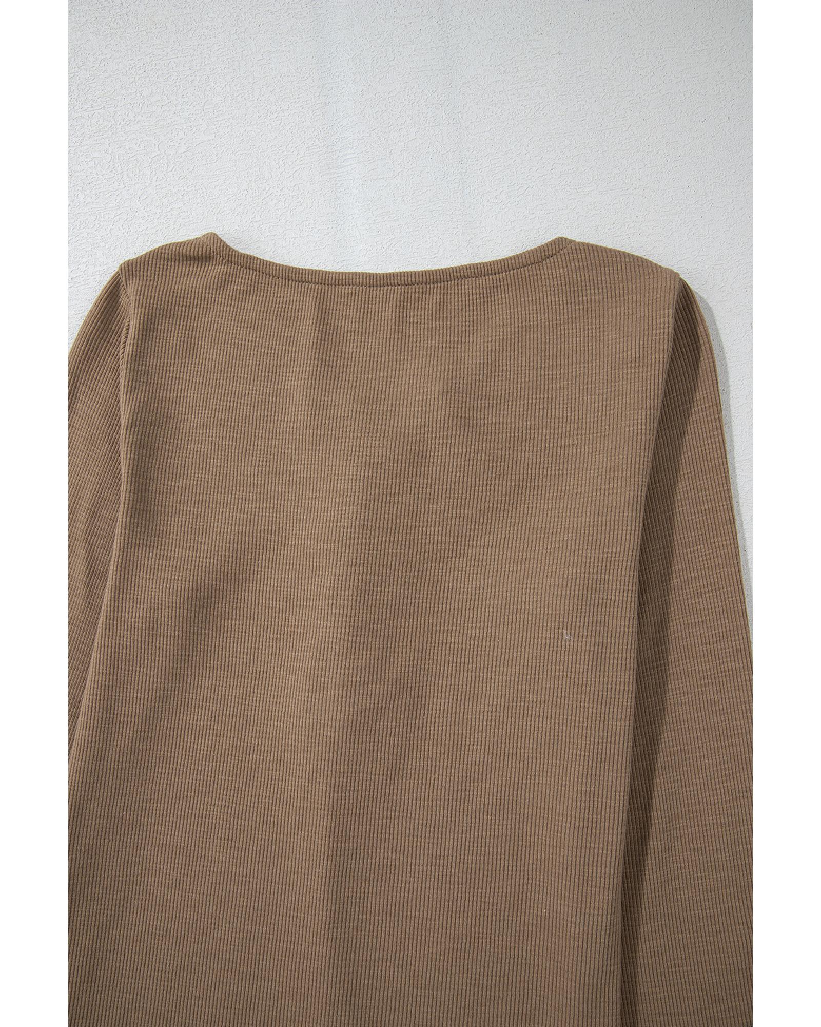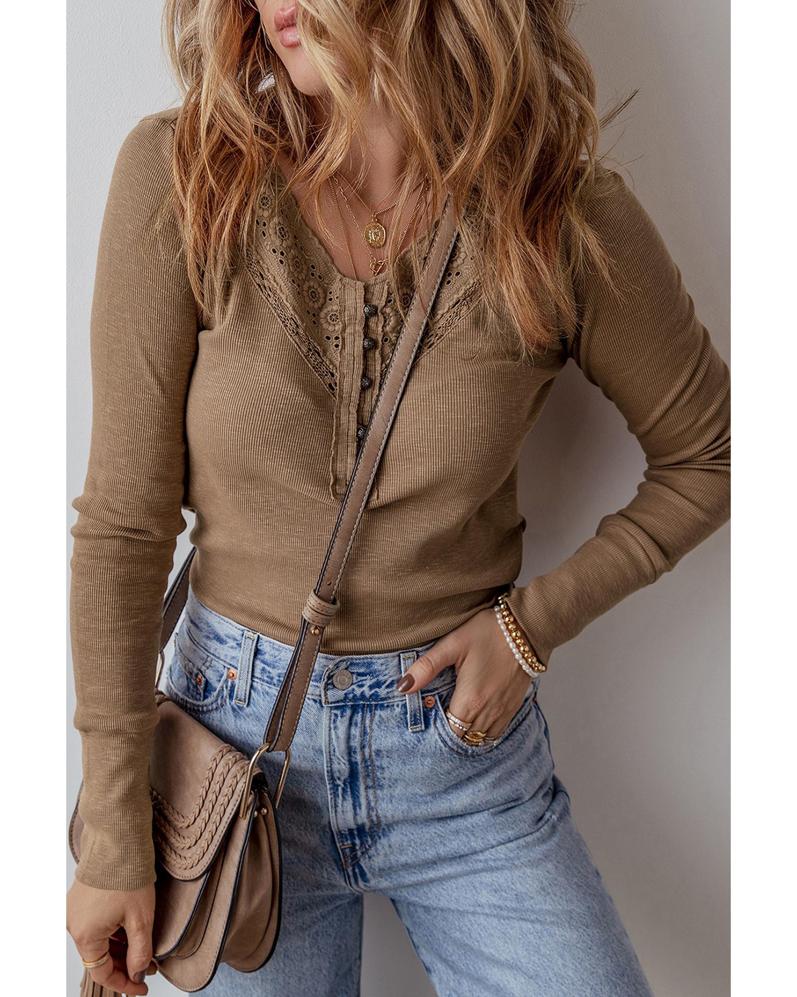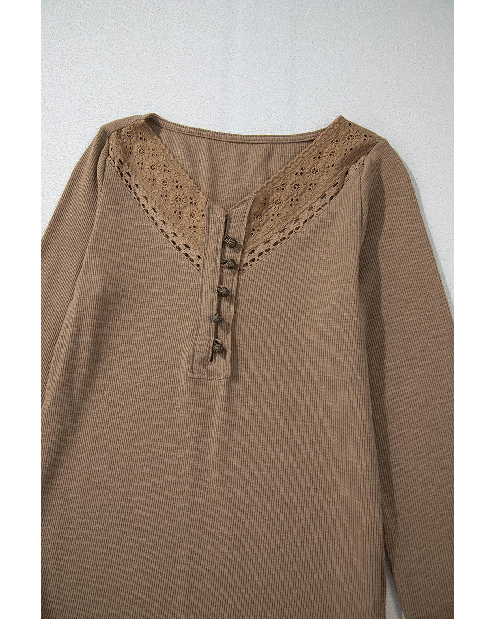 Chestnut Anglaise Broider Ribbed Long Sleeve Top – XL