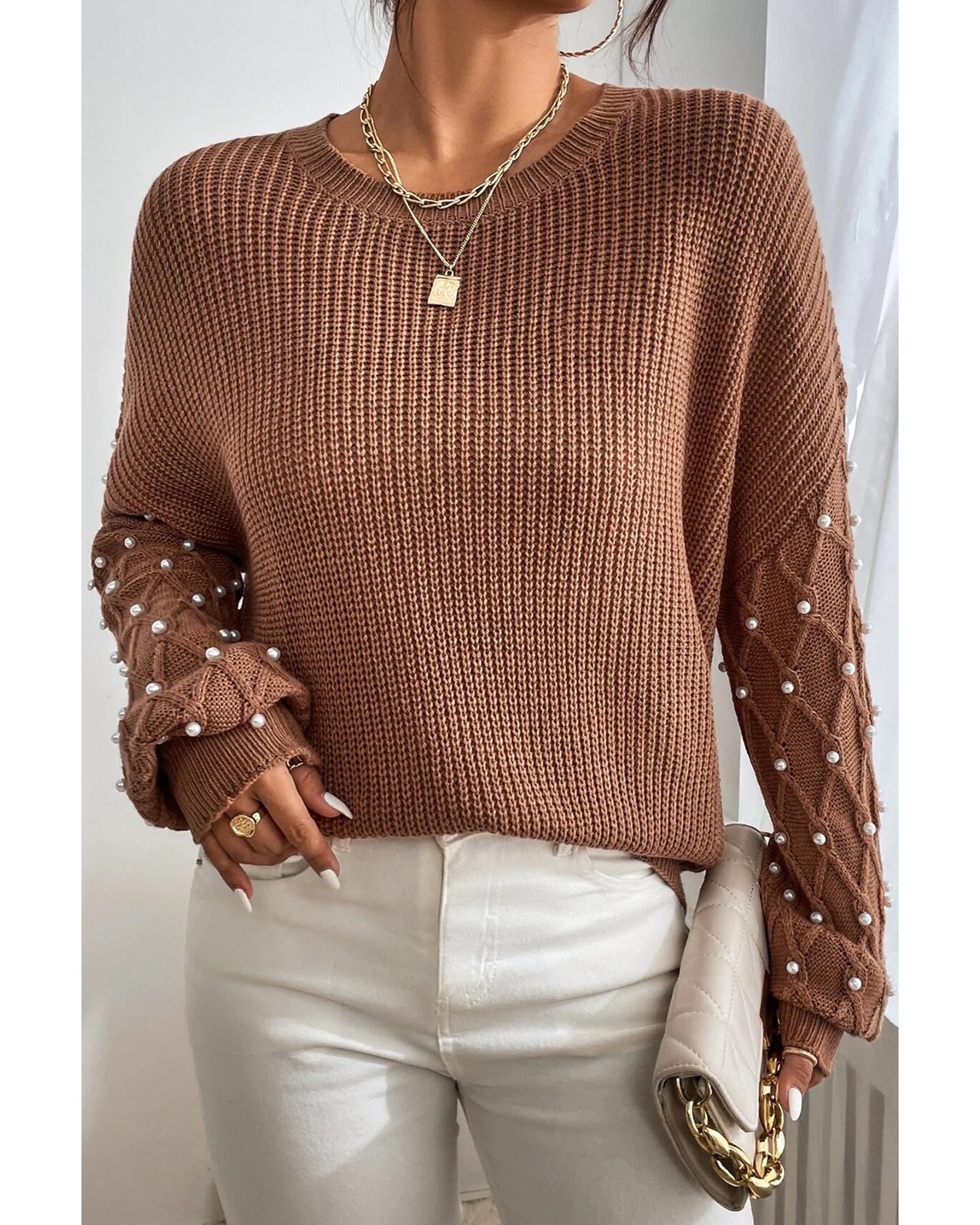 Chestnut Beaded Drop Shoulder Round Neck Sweater – S