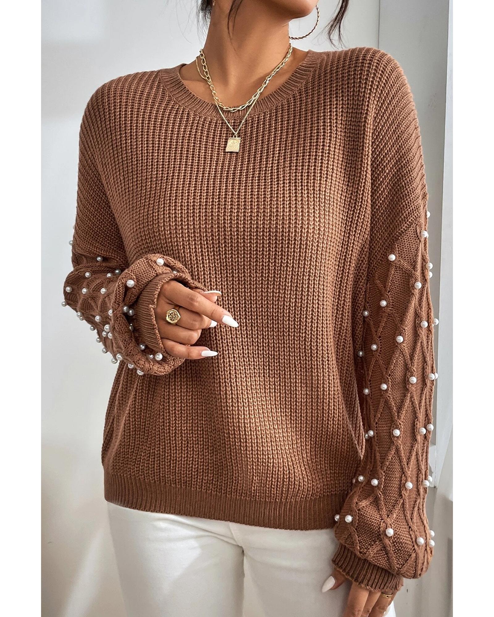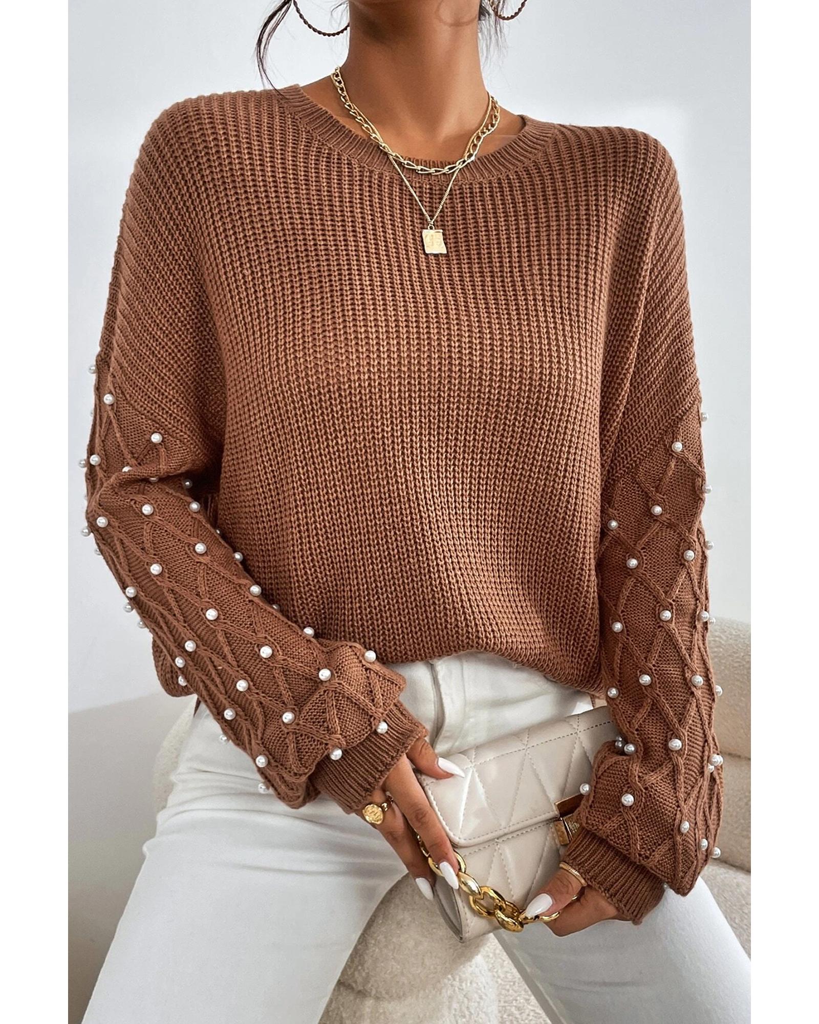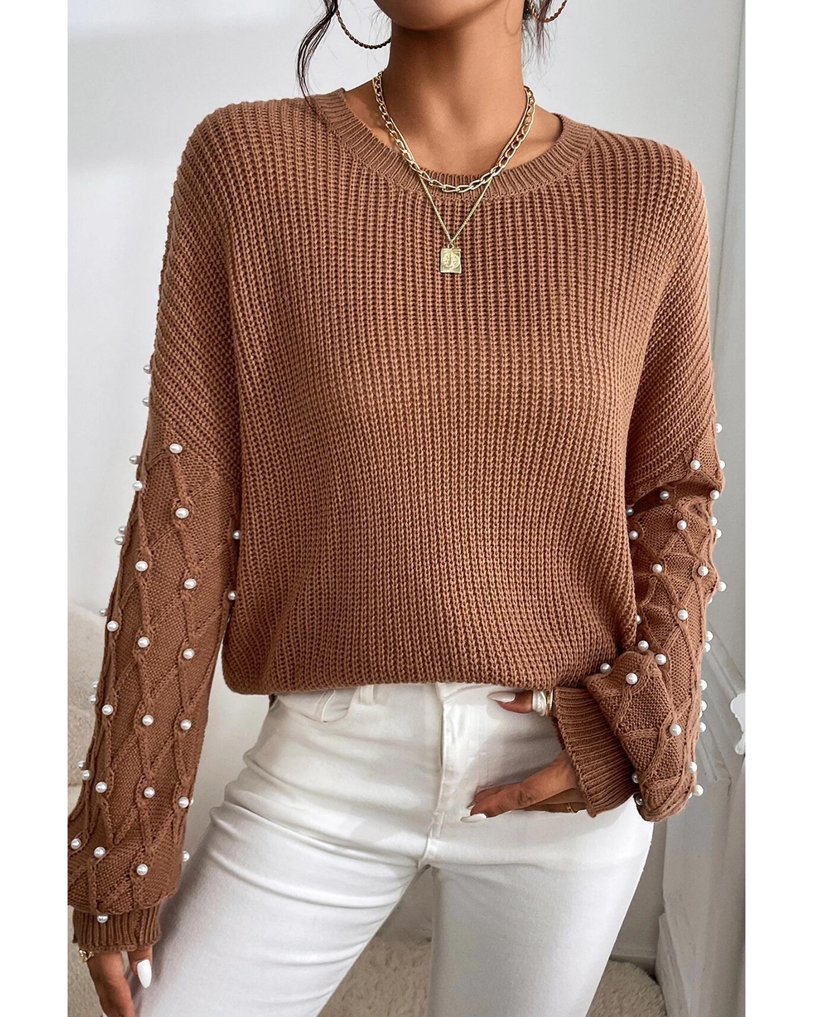 Chestnut Beaded Drop Shoulder Round Neck Sweater – XL