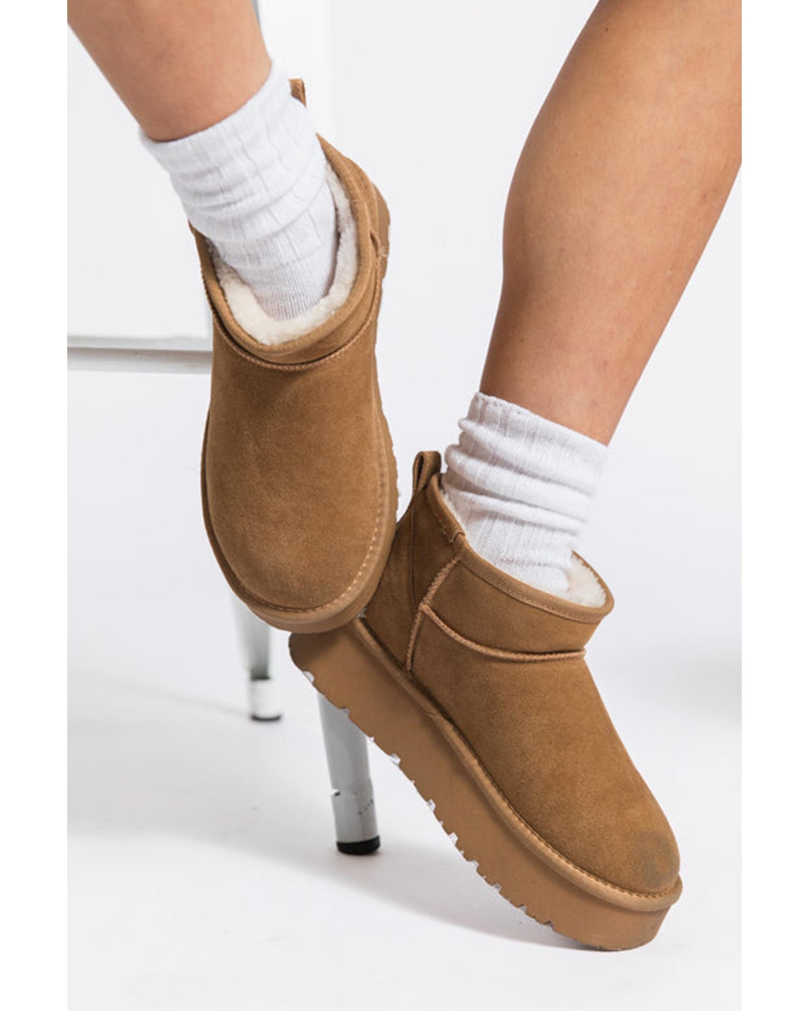 Chestnut Faux Fur Lined Suede Ankle Snow Boots - 38 EU