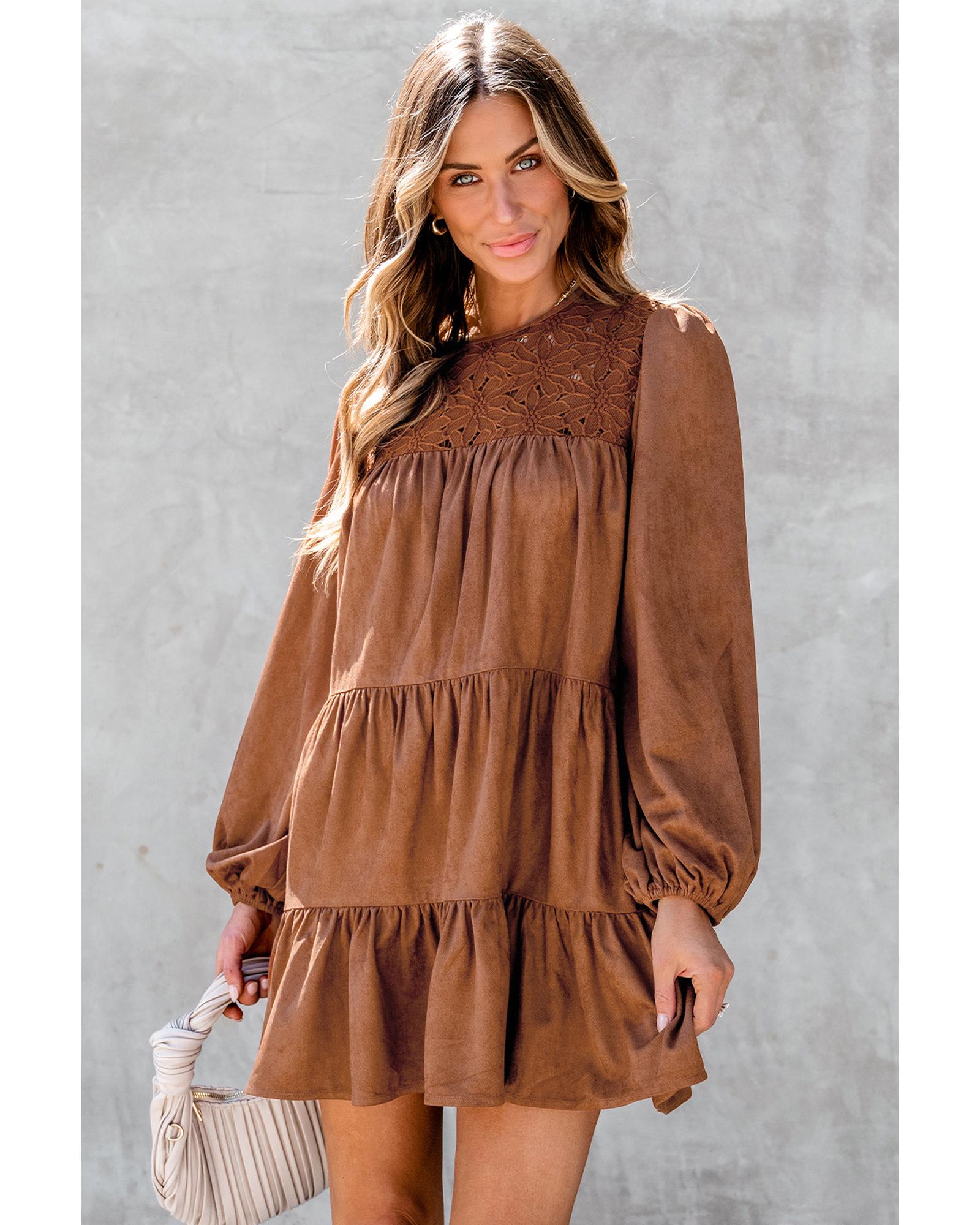 Chestnut Floral Lace Crochet Tiered Ruffled Mini Dress – XL