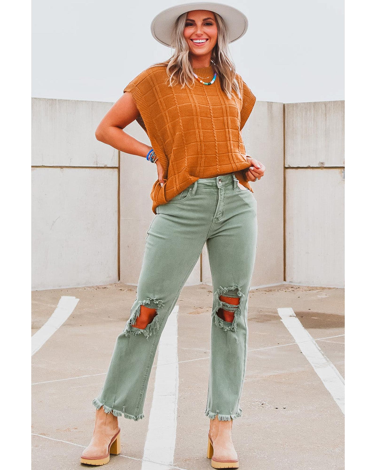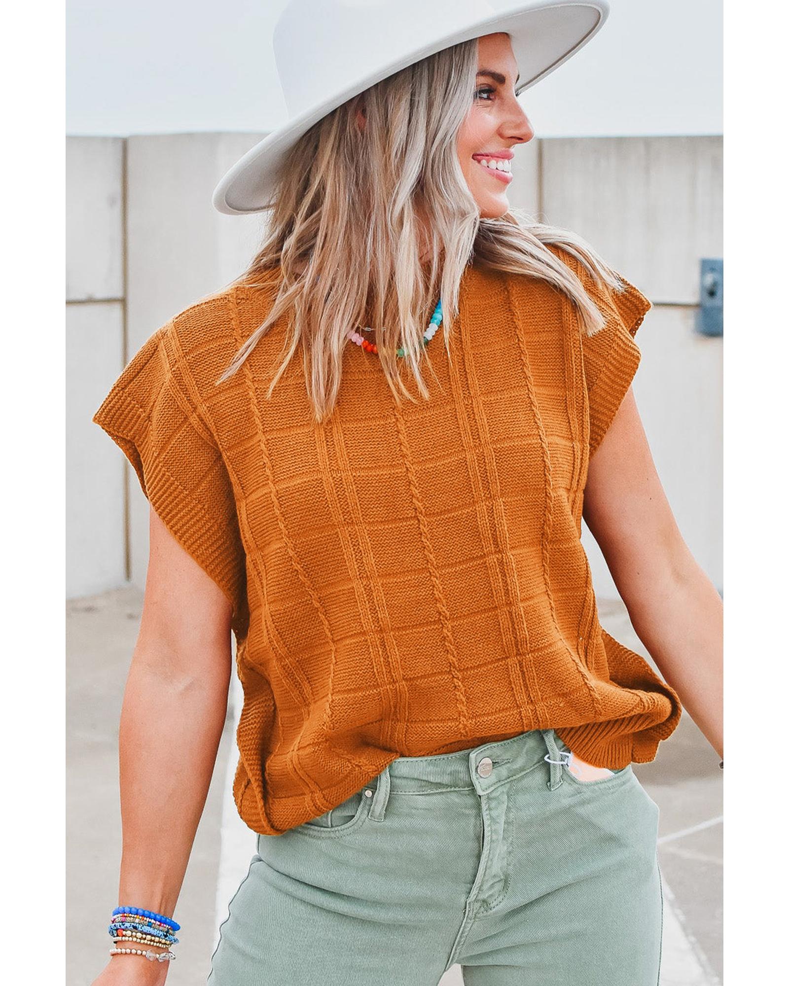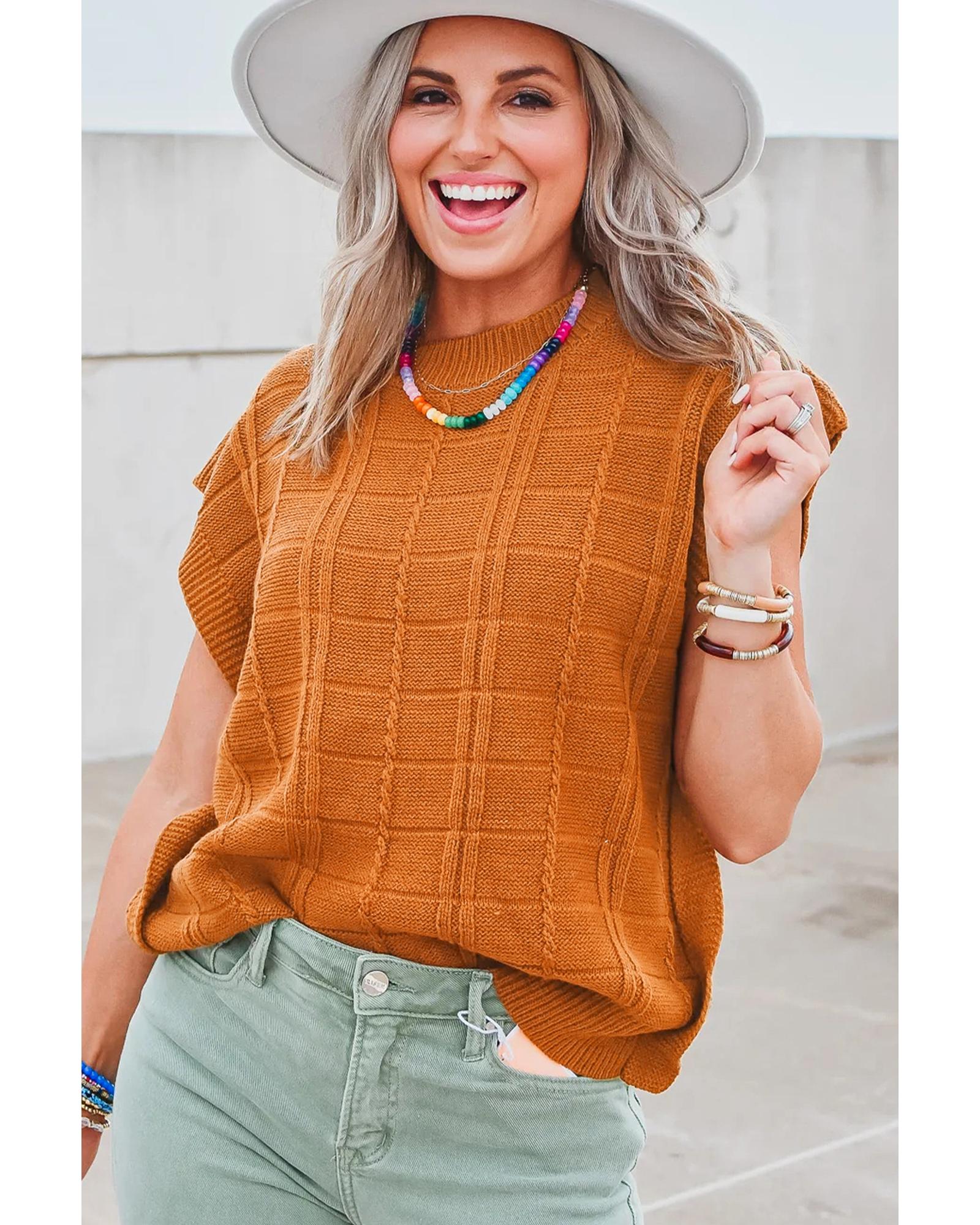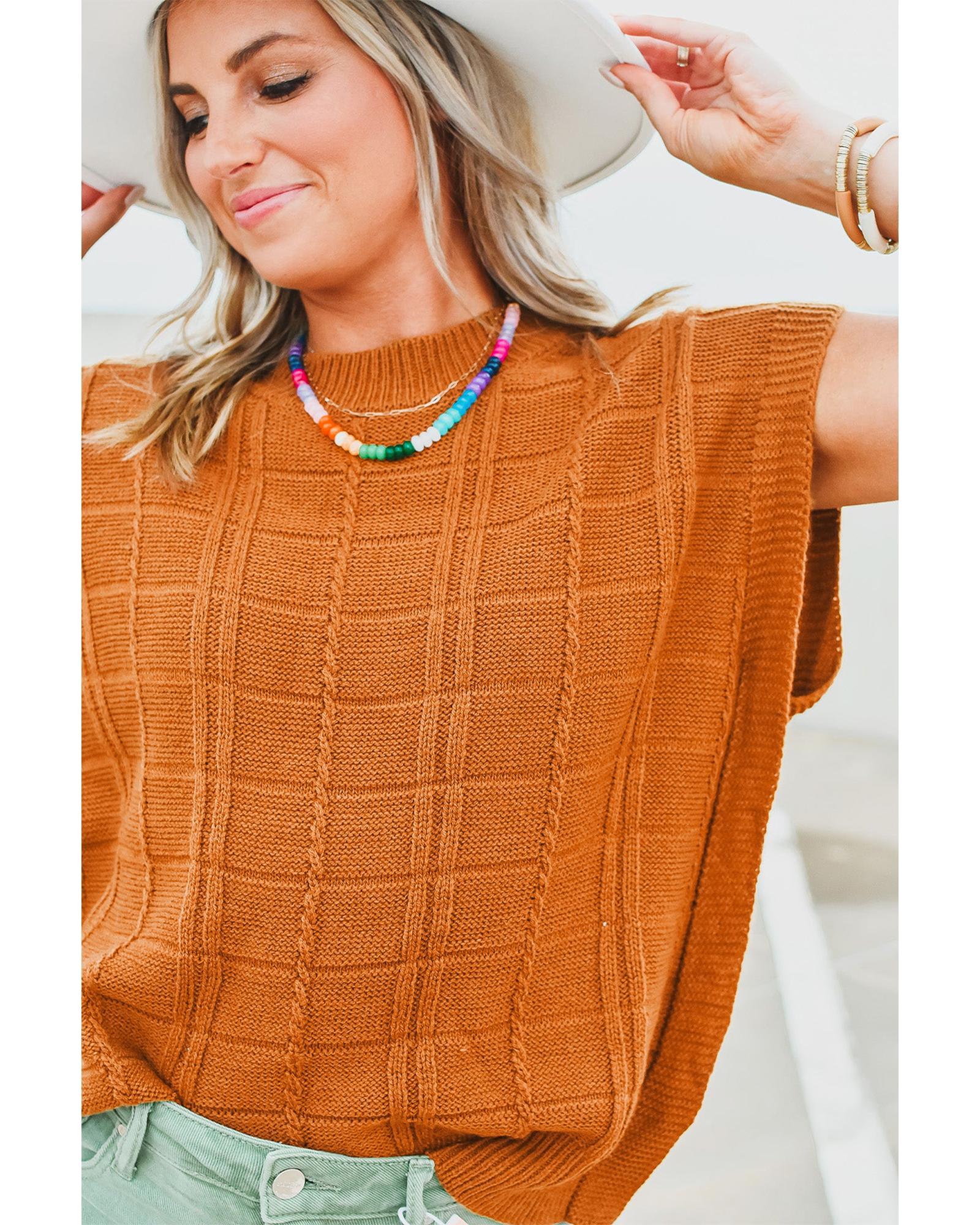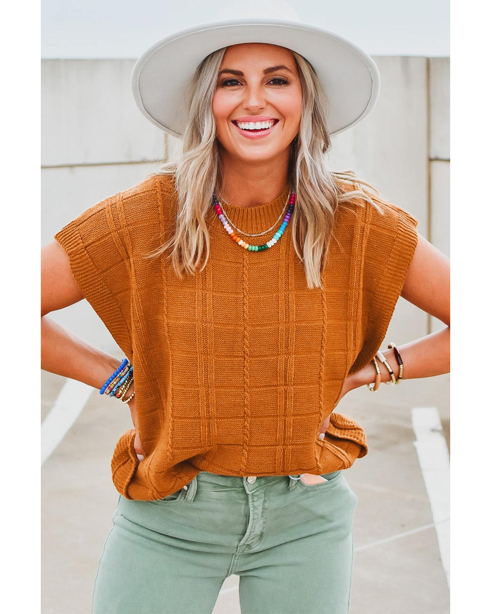 Chestnut Grid Textured Short Sleeve Sweater – L