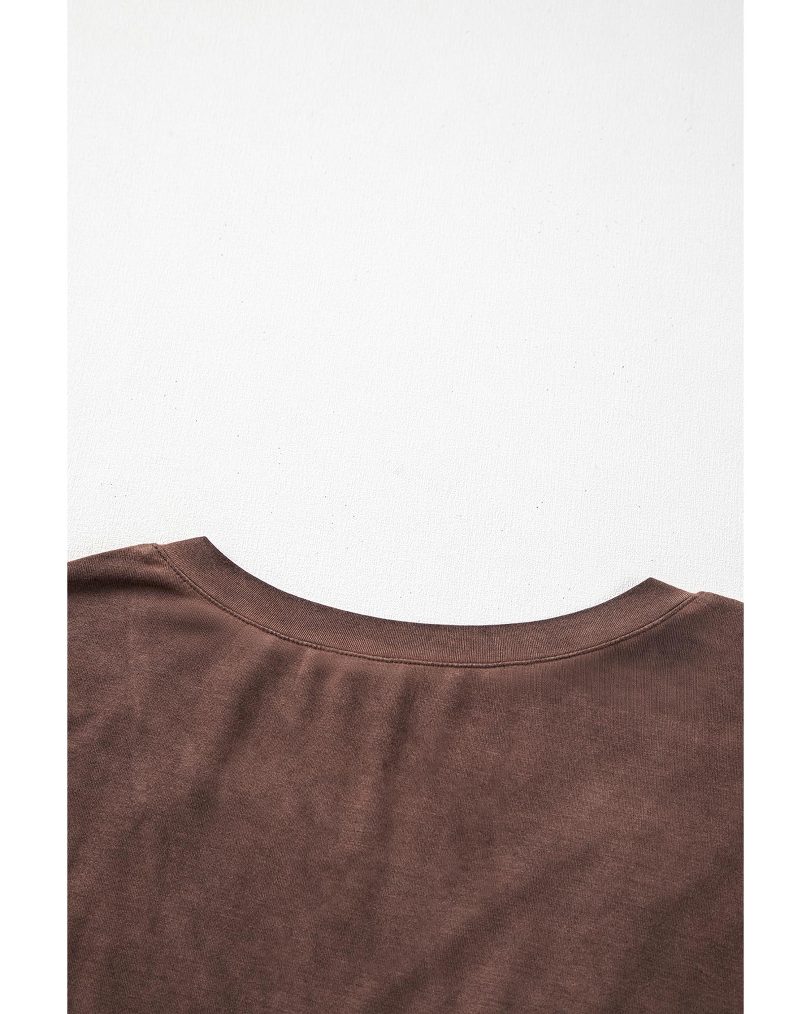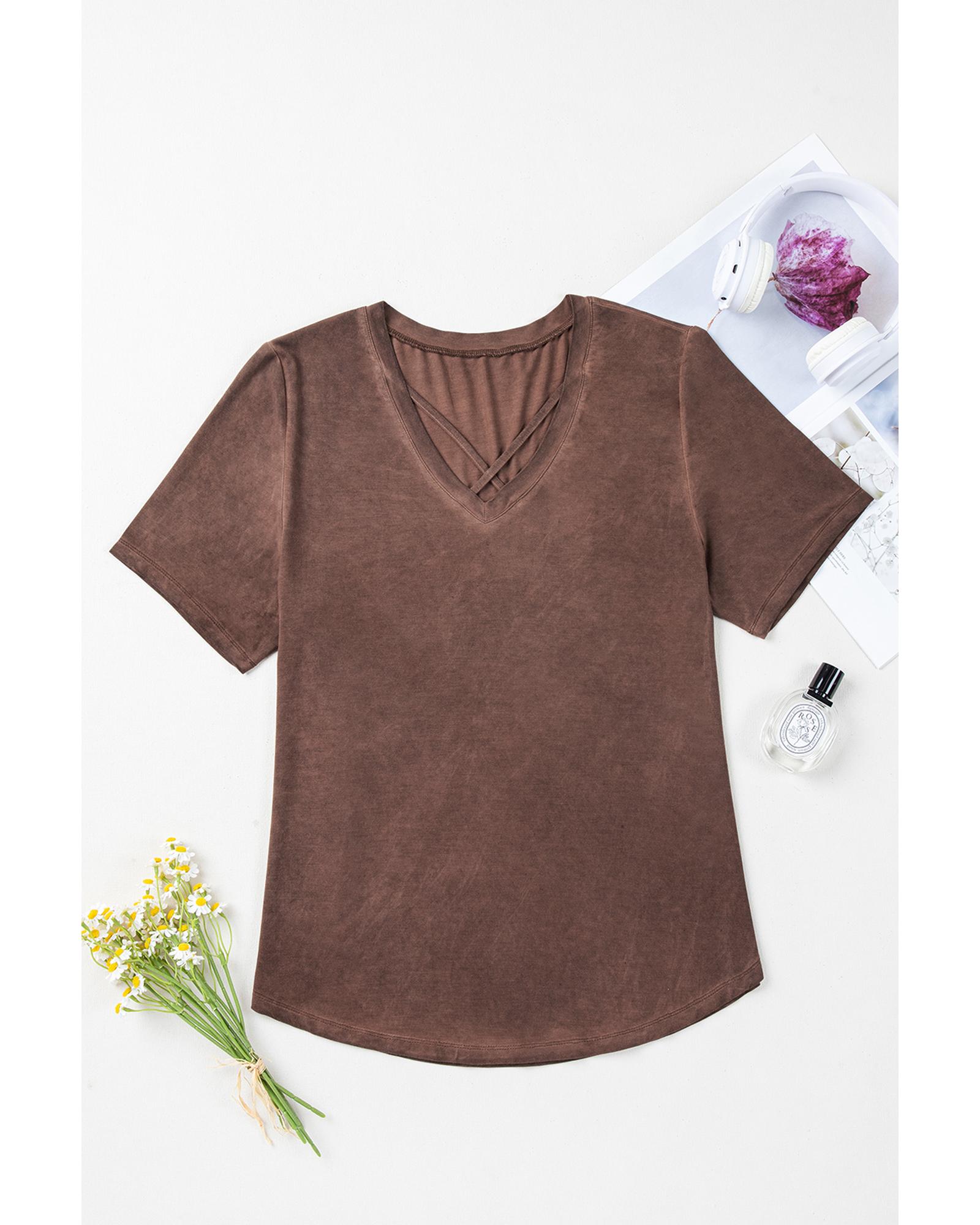 Chestnut Mineral Wash Criss Cross V Neck Casual T Shirt – M