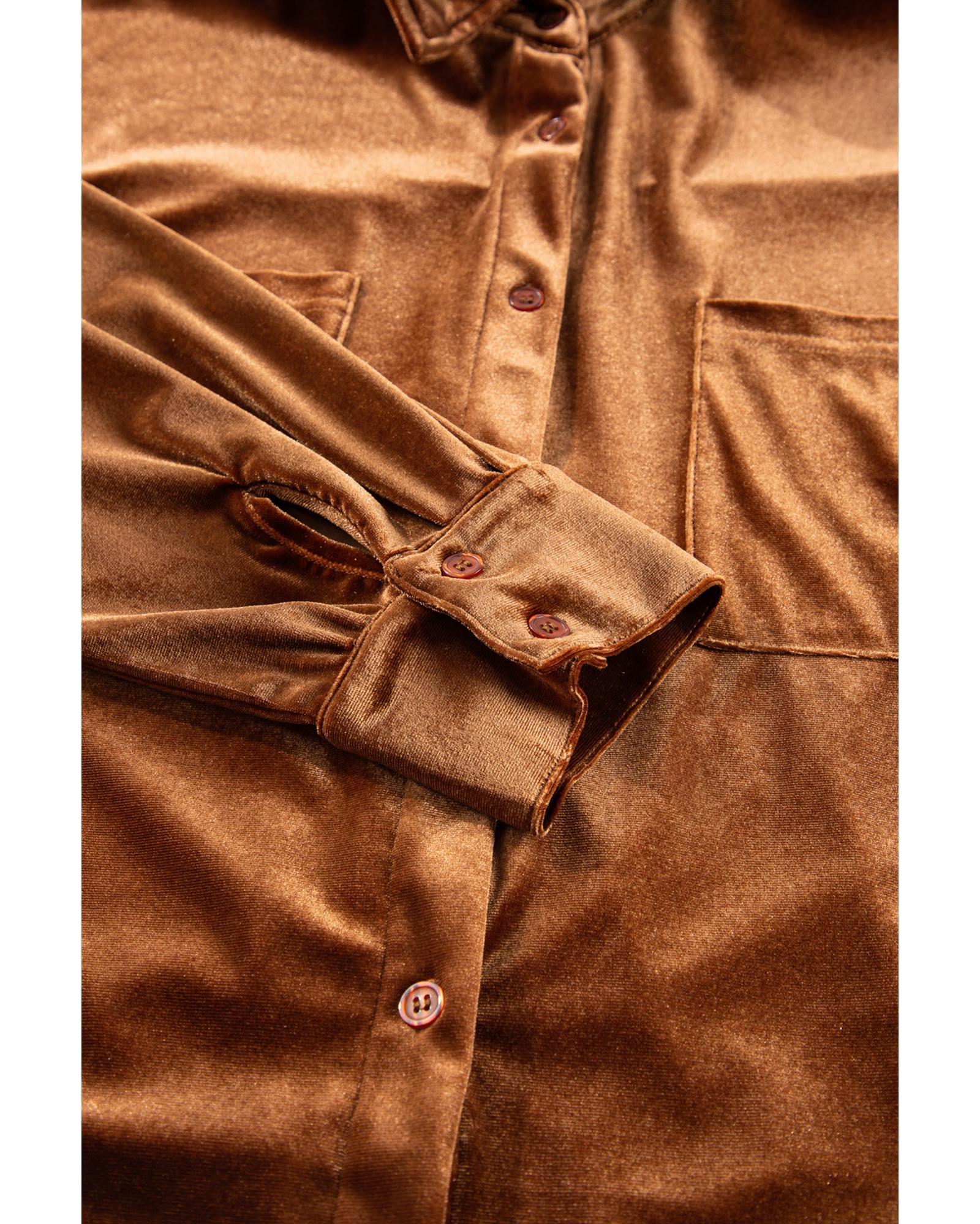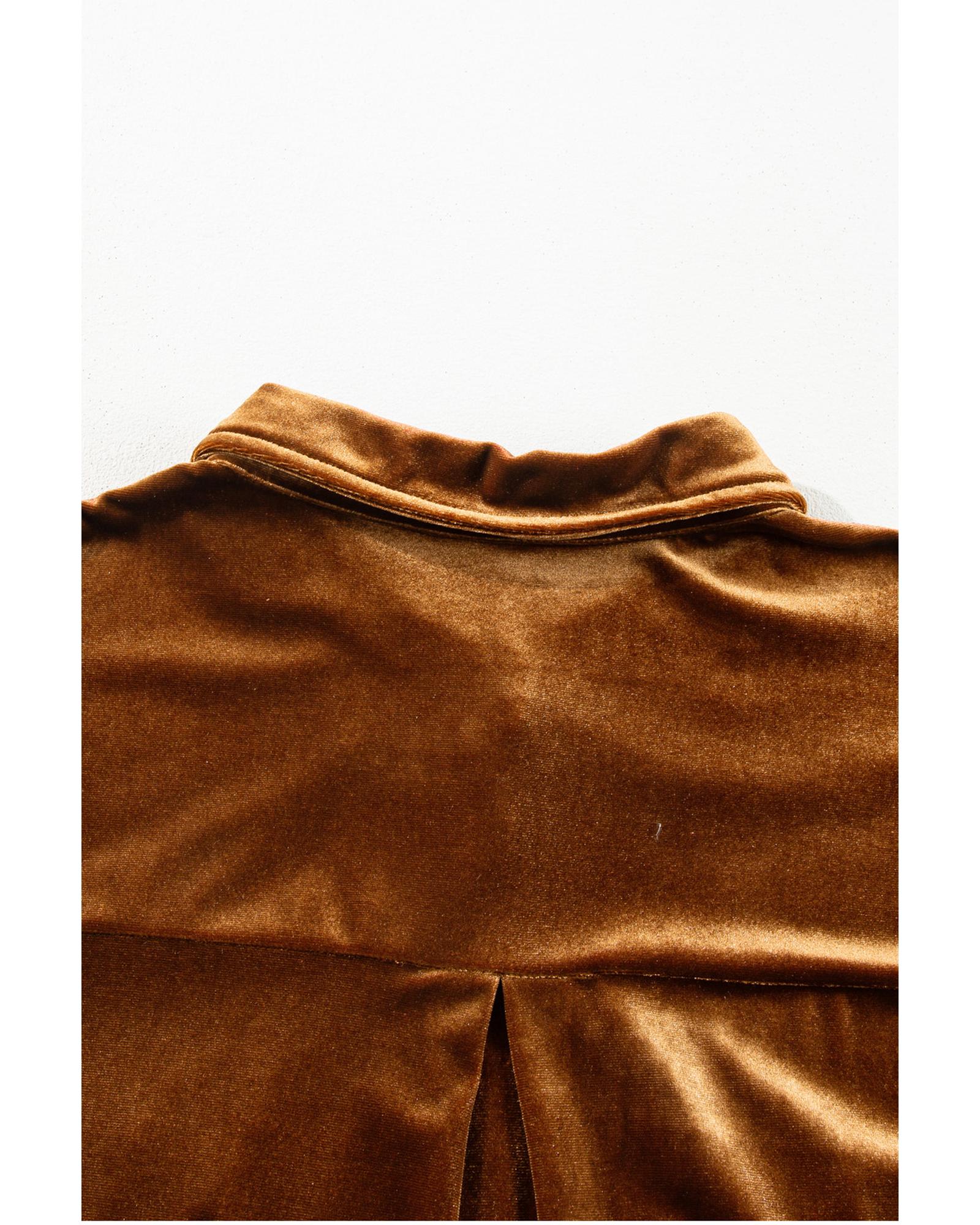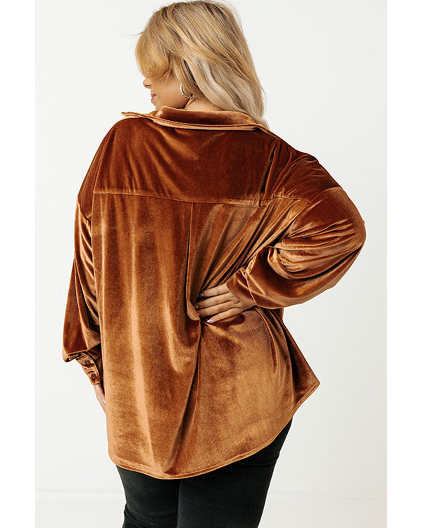 Chestnut Plus Size Velvet Chest Pocket Drop Shoulder Shirt – 2X