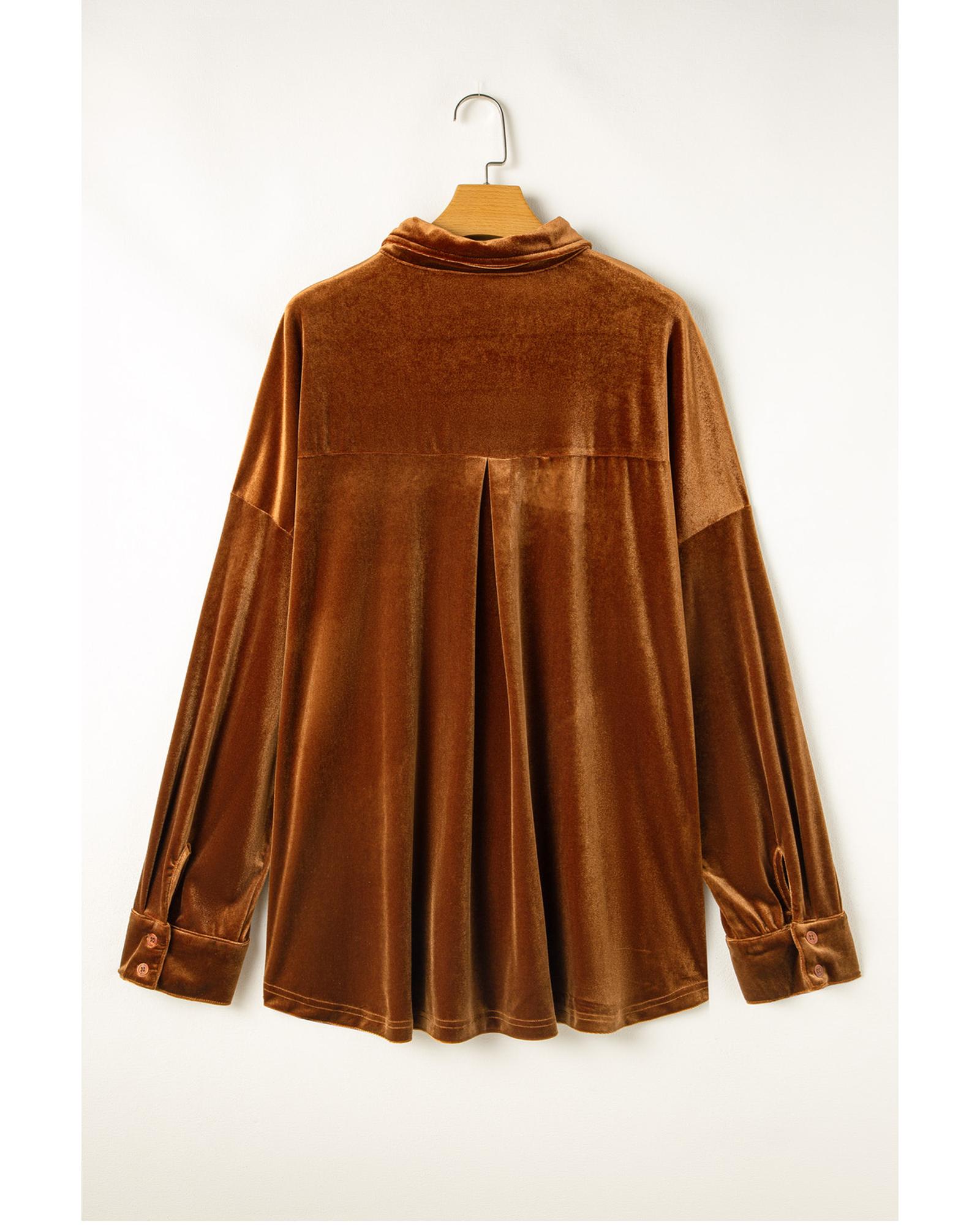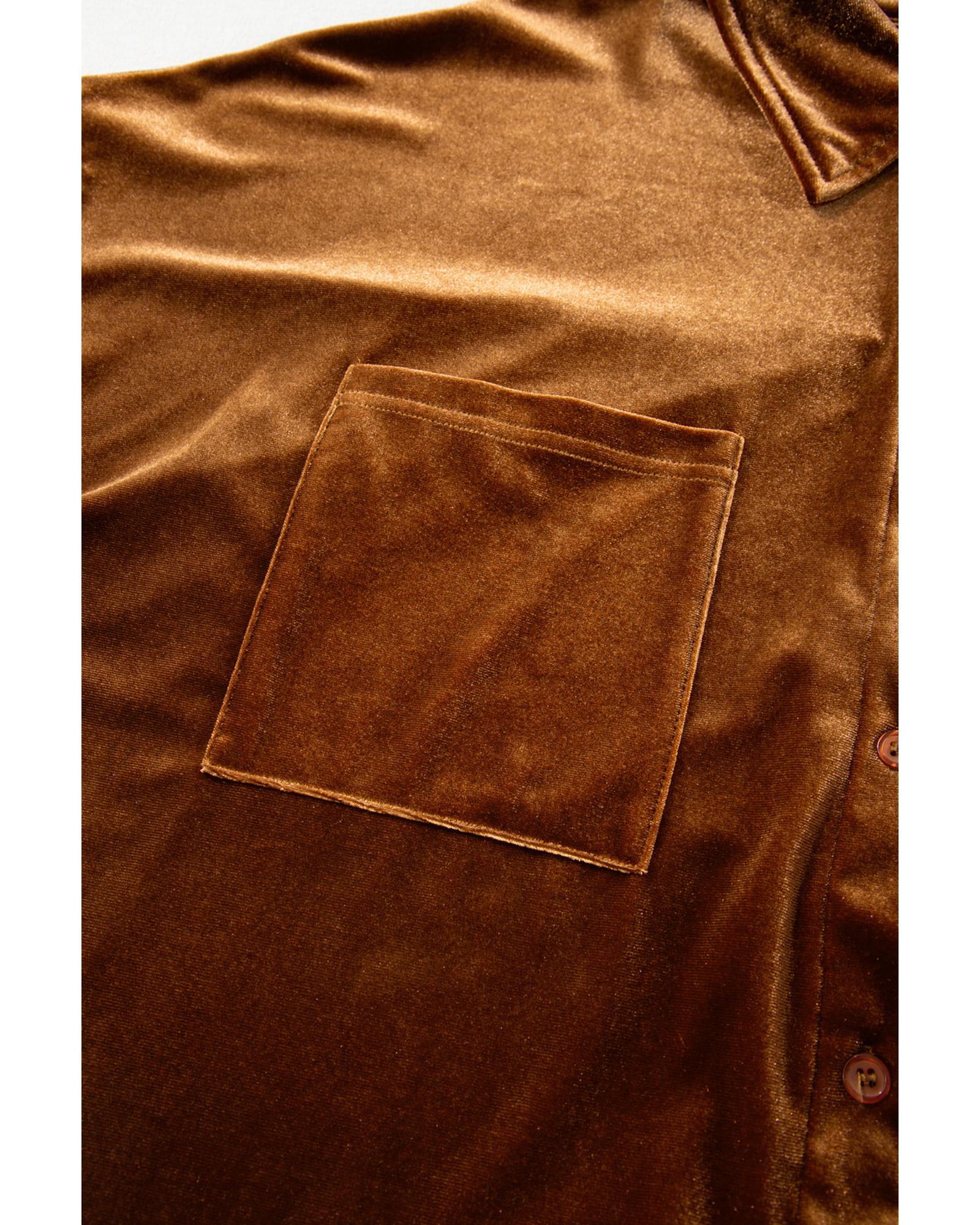 Chestnut Plus Size Velvet Chest Pocket Drop Shoulder Shirt – 3X