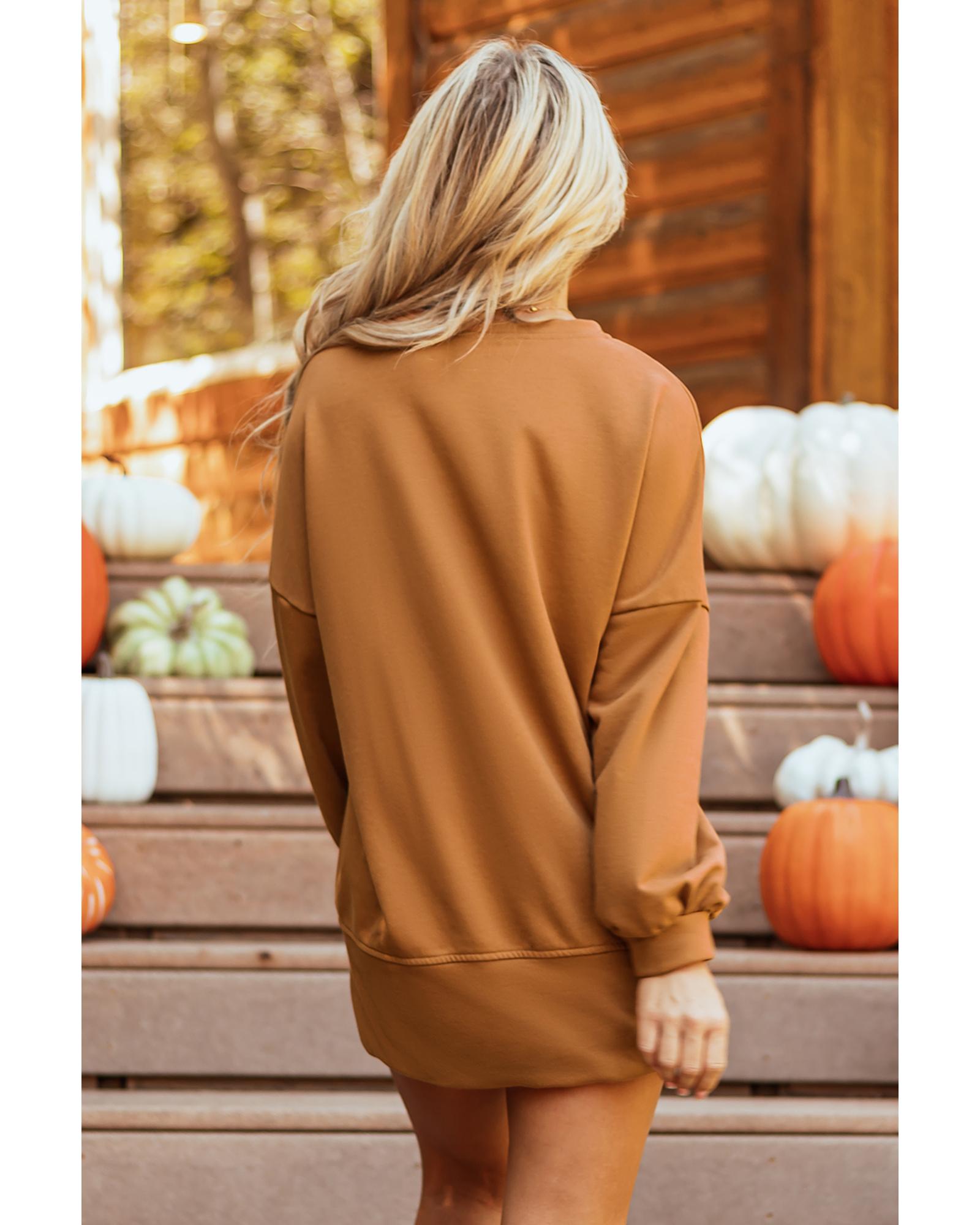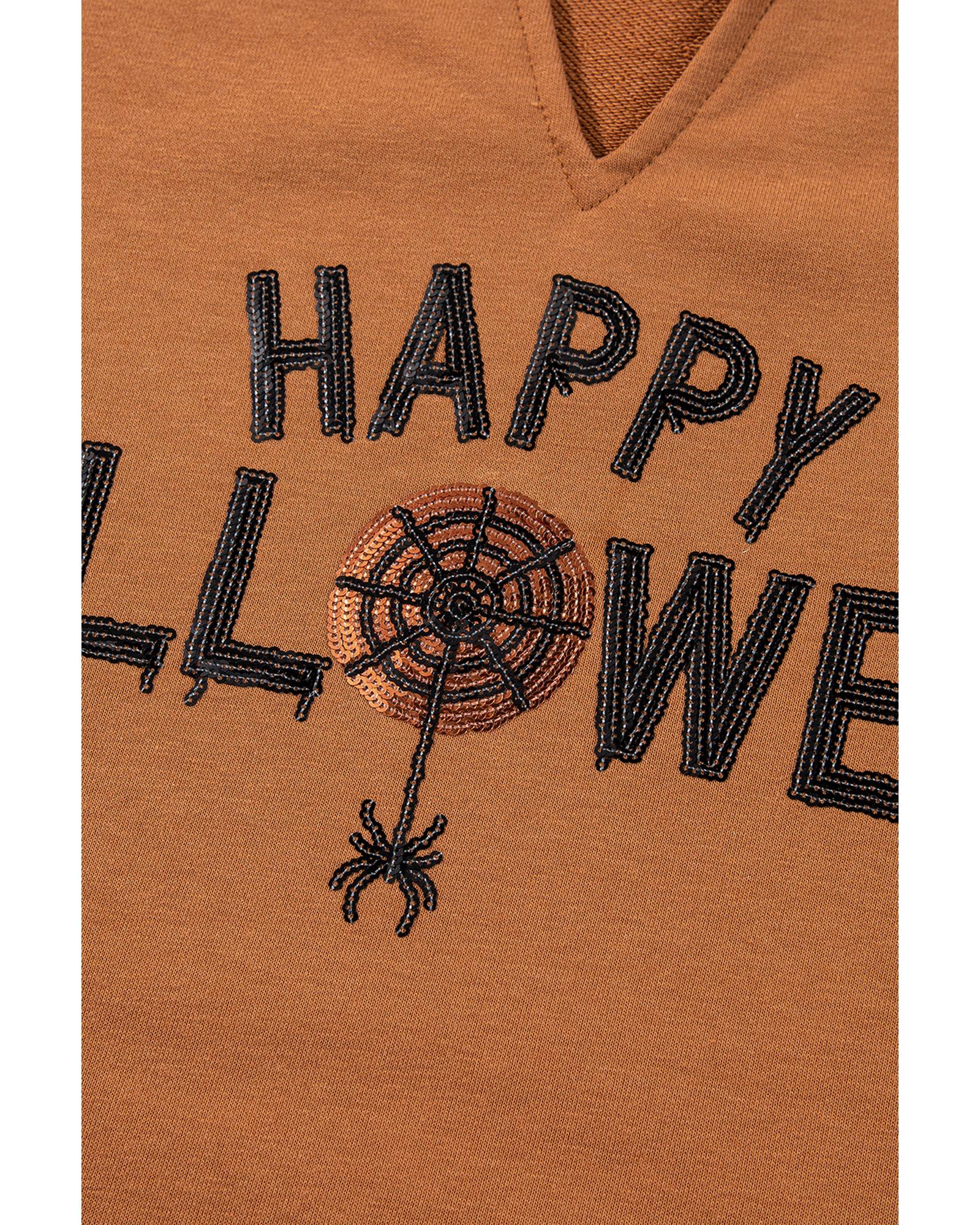 Chestnut Sequin Happy Halloween Graphic Notched Neck Long Sleeve Loose Top – XL
