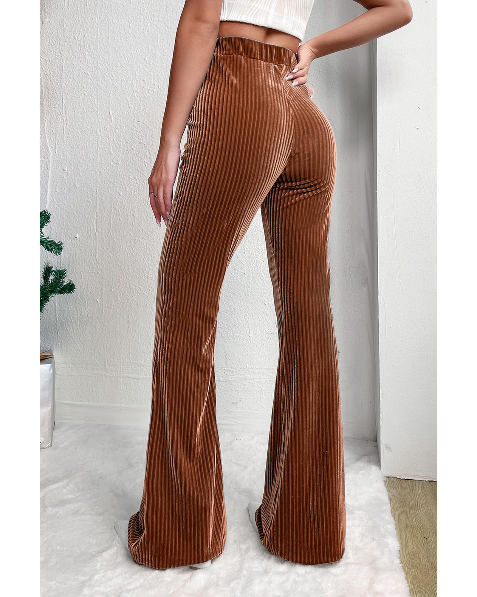 Chestnut Solid Color High Waist Flare Corduroy Pants – L