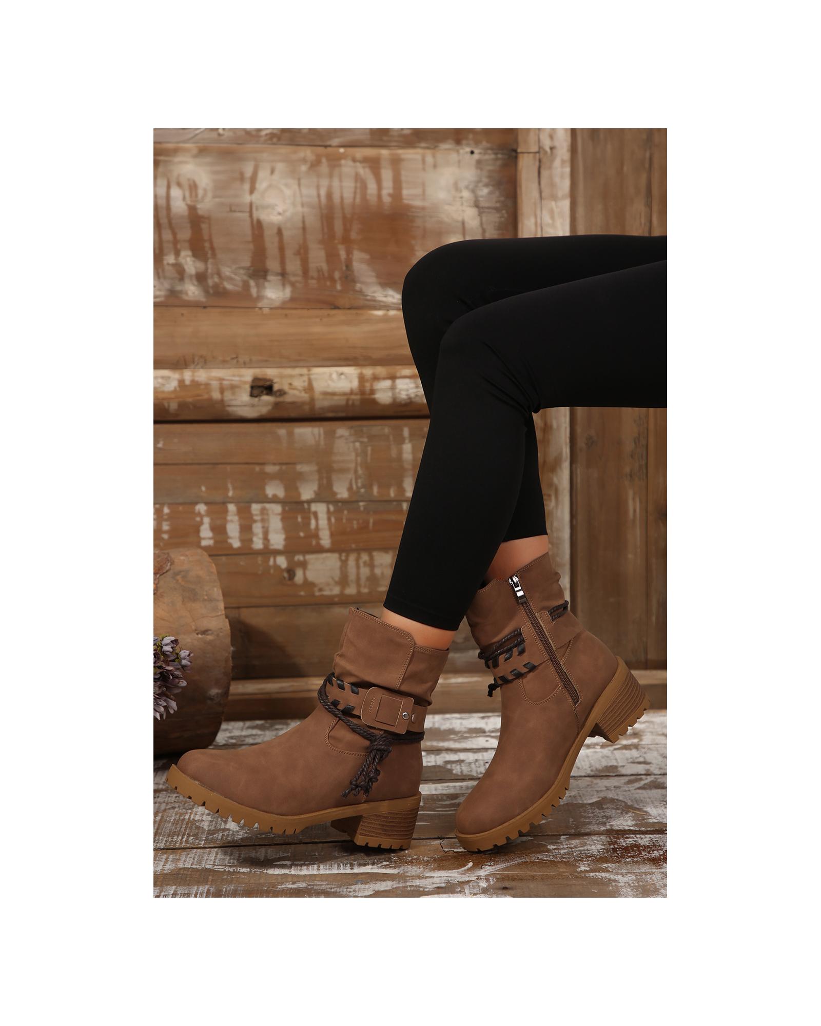 Chestnut Suede Woven Lace-up Strap Side Zip Boots – 37 EU