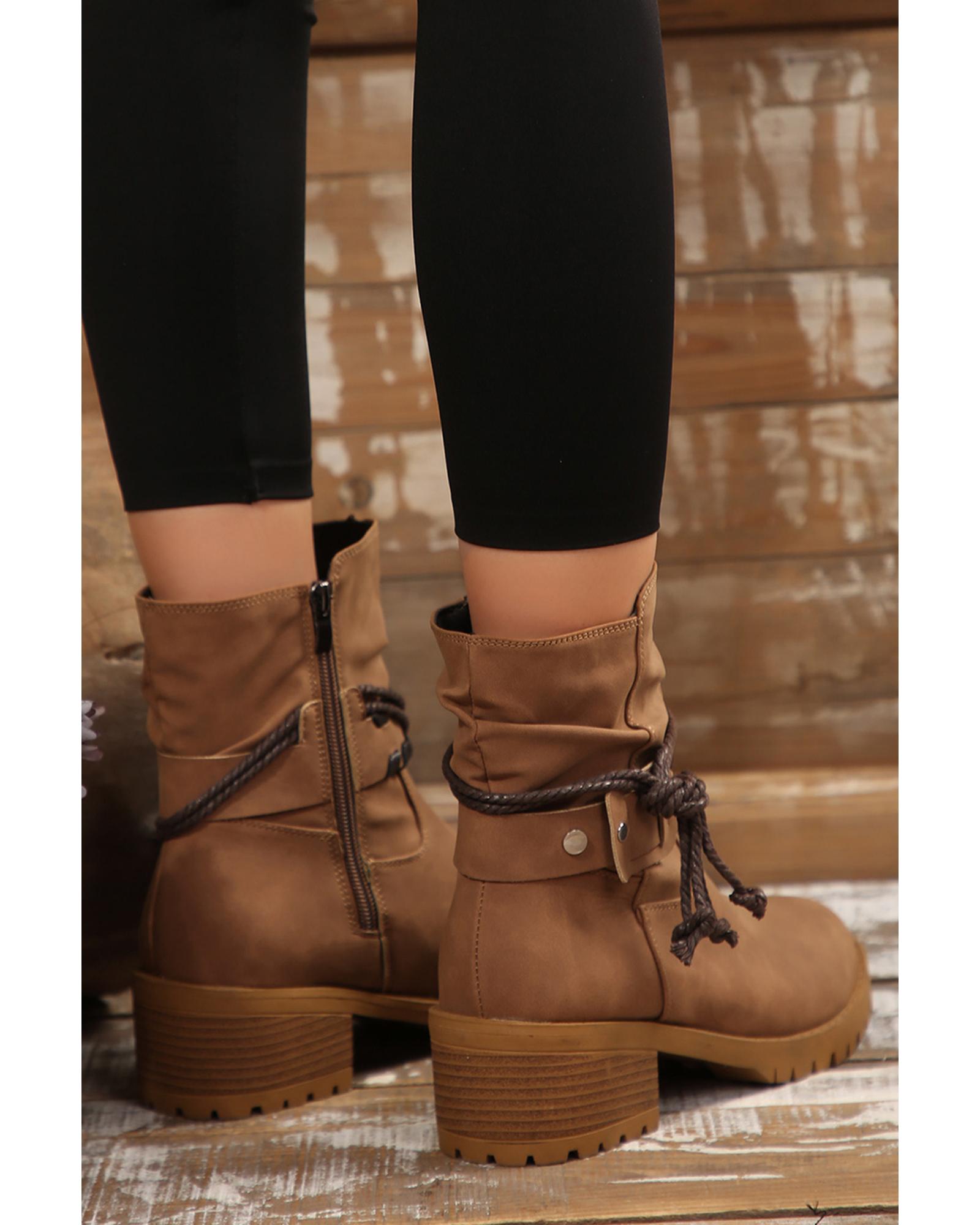 Chestnut Suede Woven Lace-up Strap Side Zip Boots – 38 EU