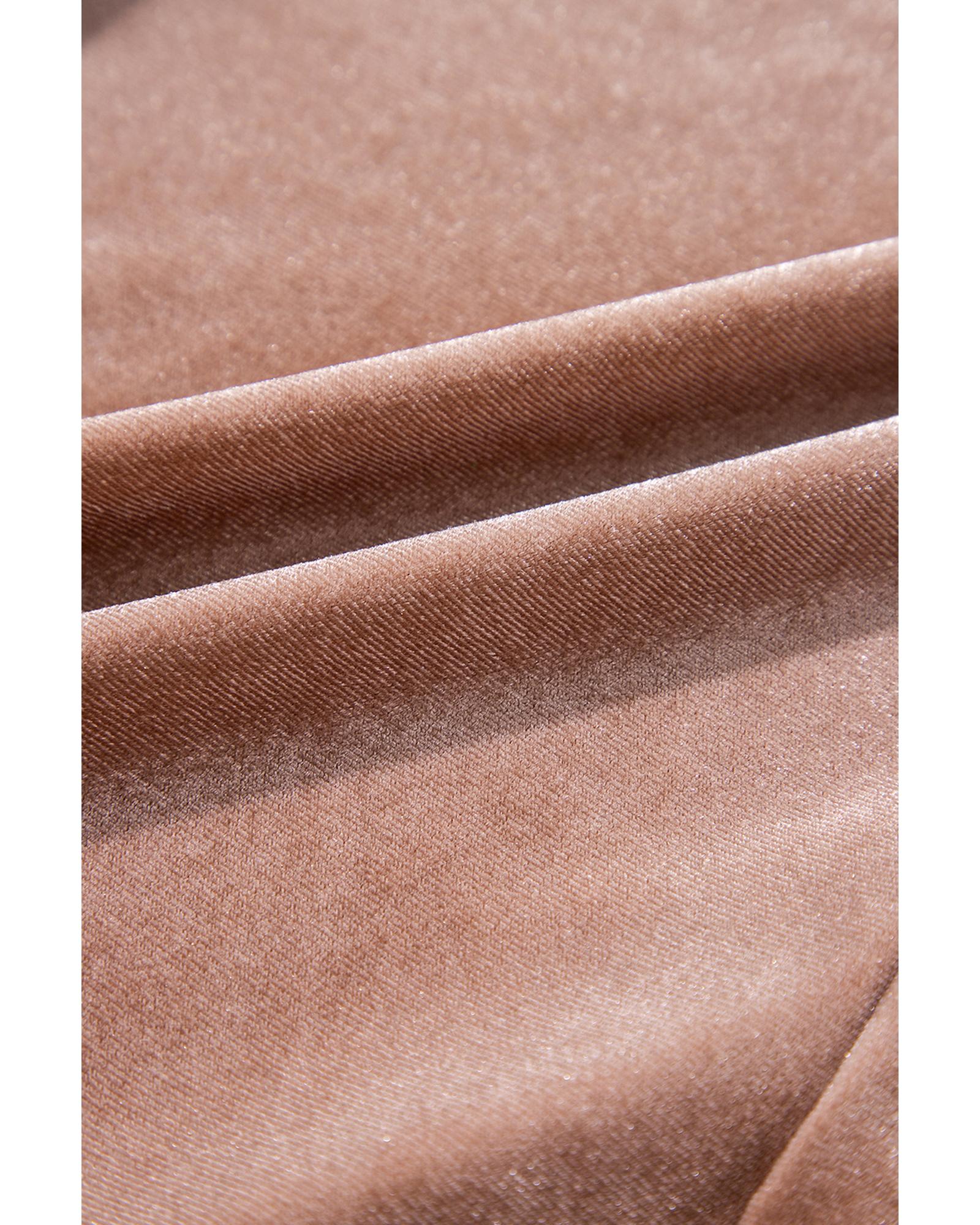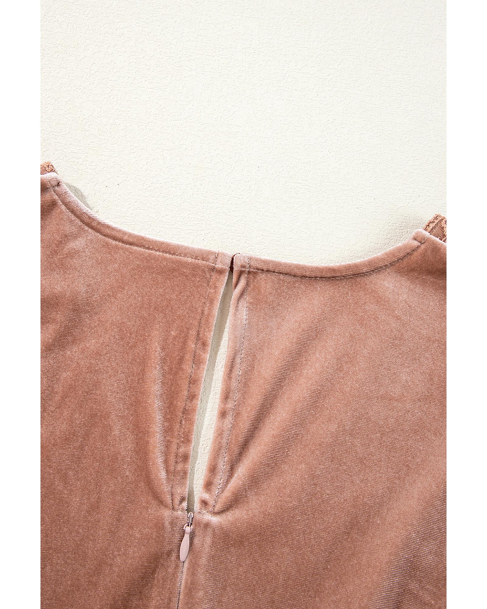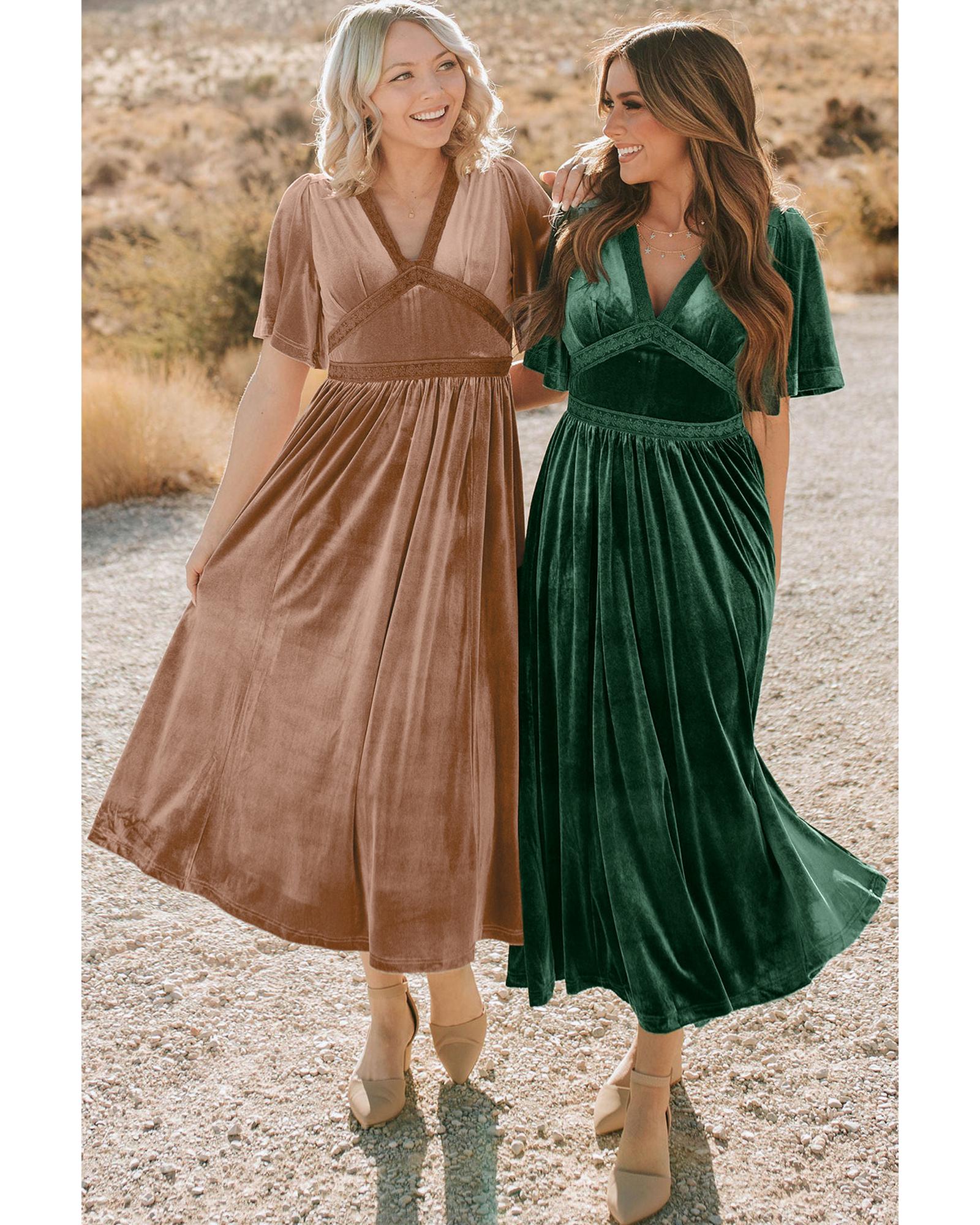 Chestnut Velvet Lacy V Neckline Short Sleeve Empire Waist Flowy Maxi Dress - S