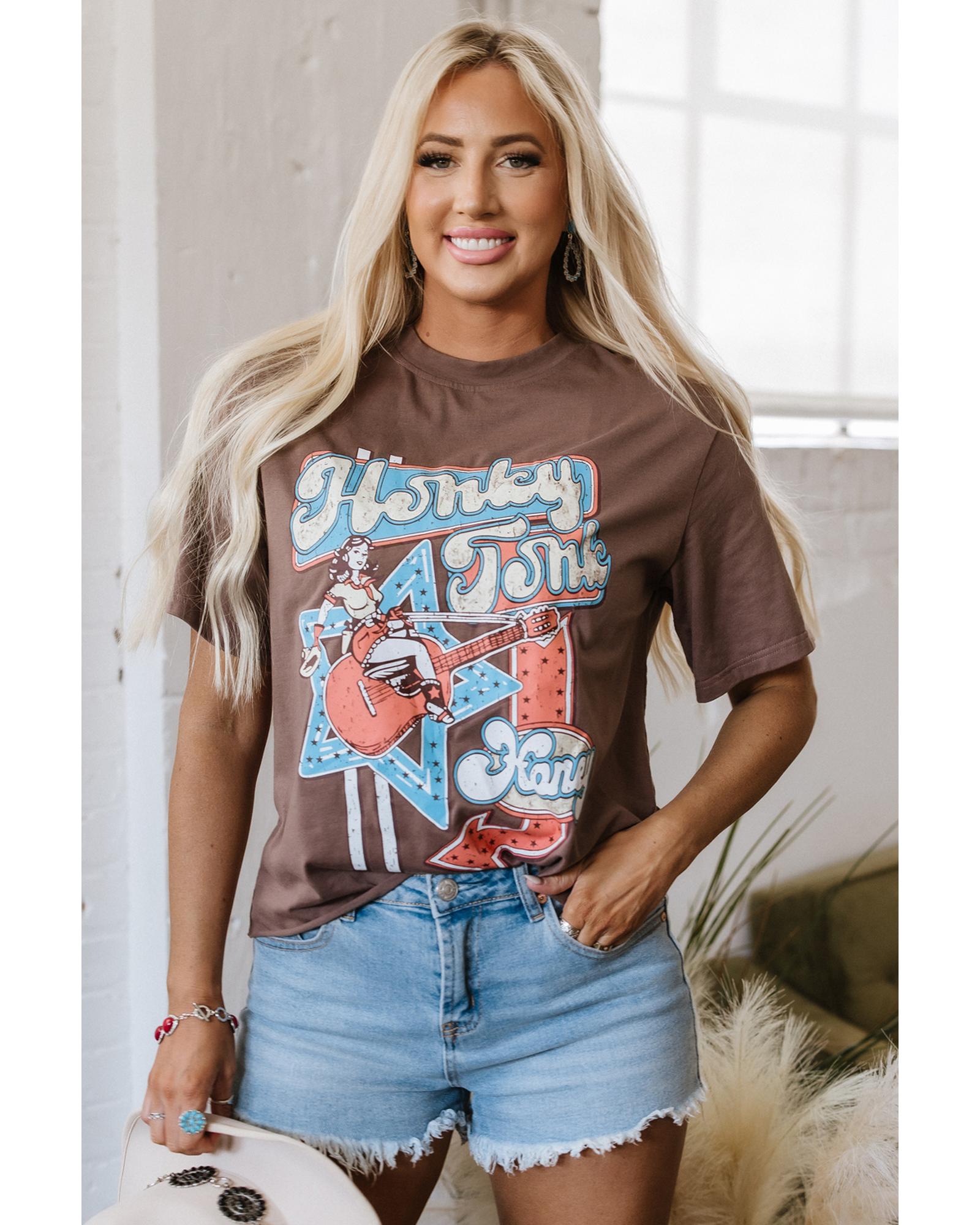Chicory Coffee Honky Tonk Honey Graphic Crew Neck Western Fashion Tee – S
