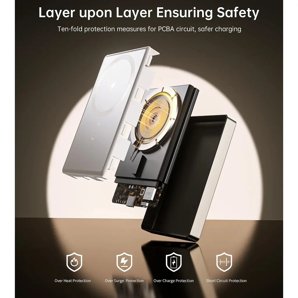 Choetech B739 offers wired charging via a 20W USB-C cable to charge your device up to 60% in just 30 minutes, as well as wireless, convenient magnetic charging. Automatic output power adjustment (5W, 7.5W, 10W, 15W) ensures optimal charging for each device, without tangled wires. In addition, the B739 renews the energy of other devices while charging itself, making it even more practical.