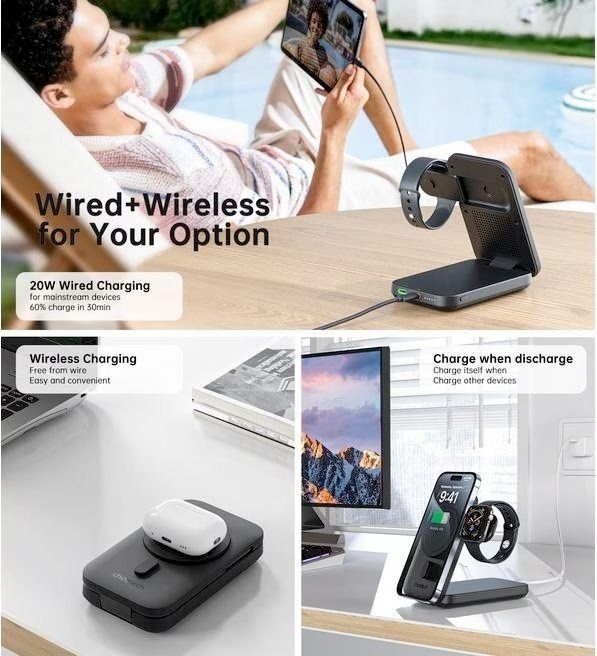 CHOETECH B750 Qi2 Certified 3-in-1 magnetic charger Stand with 10000mAh battery