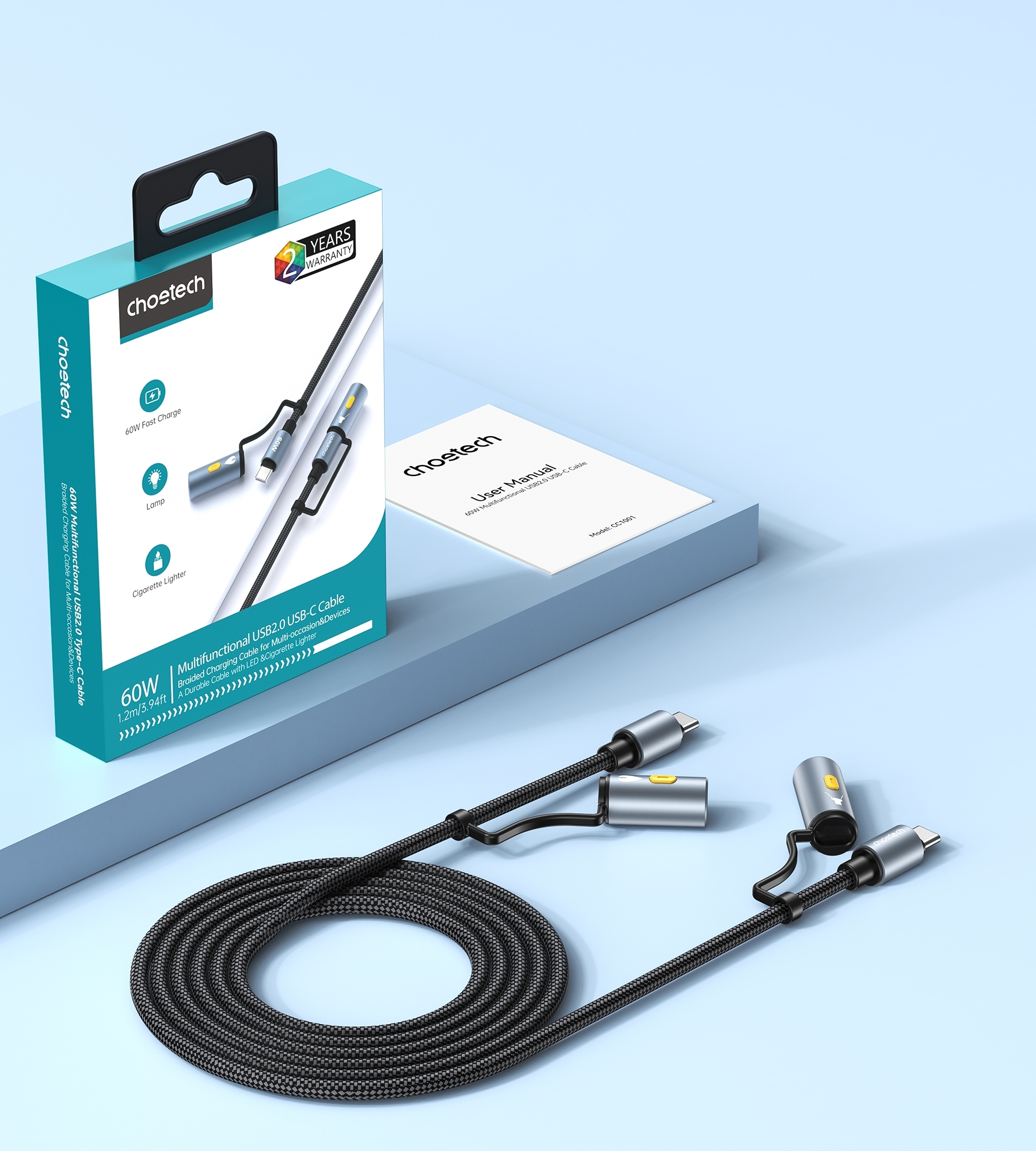 CHOETECH CC1001 Smart PD60W 4-in-1 USB C to C cable 1.2M