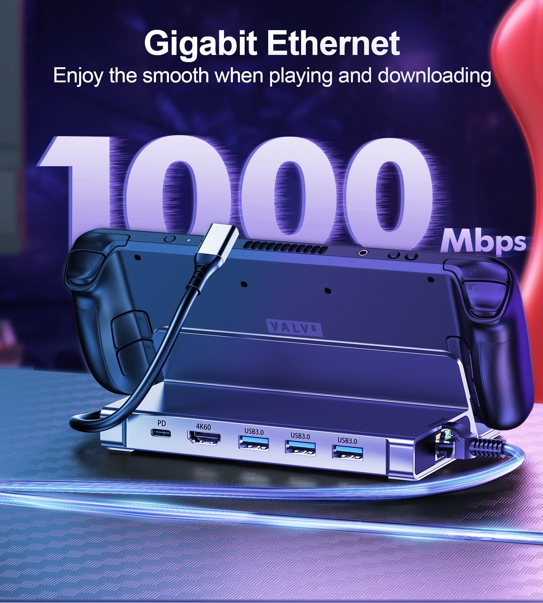 When using Steam Deck, have you ever run out of port to expand your device’s functionality? The limited number of standard connectors can be frustrating. HUB-M52 from Choetech will solve not only this problem. The multifunctional HUB also offers a number of other convenient solutions designed to facilitate play. Thanks to the accessory, you can easily connect to a permanent Ethernet port and extend the image to a monitor or TV. The dimensions and appearance will perfectly fit the structure of the Steam Deck.