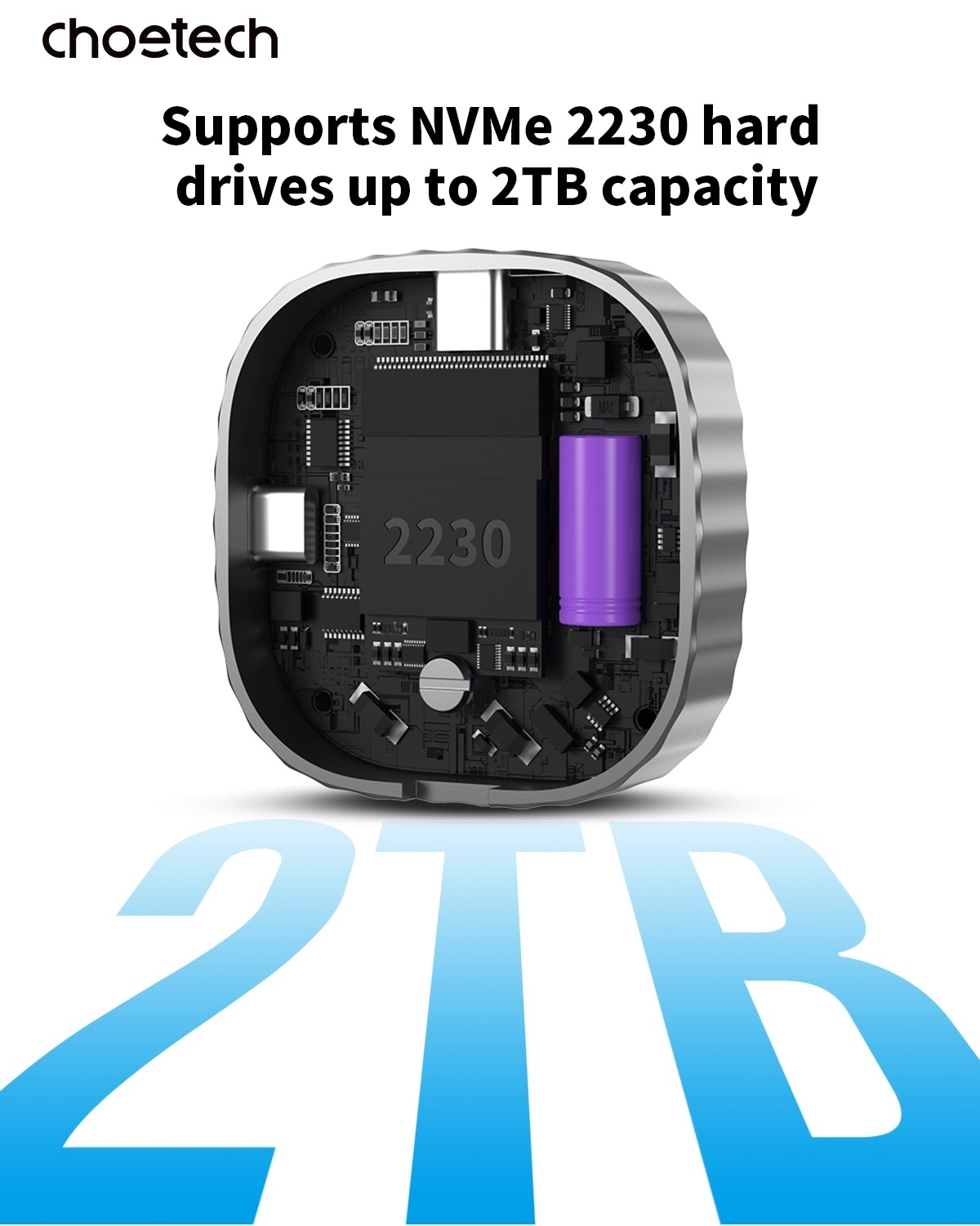 CHOETECH MSE001-GY Dual USB-C Port M.2 NVME 2230 Protocol SSD Enclosure with PD100W input Enclosure (Support 2TB Max)