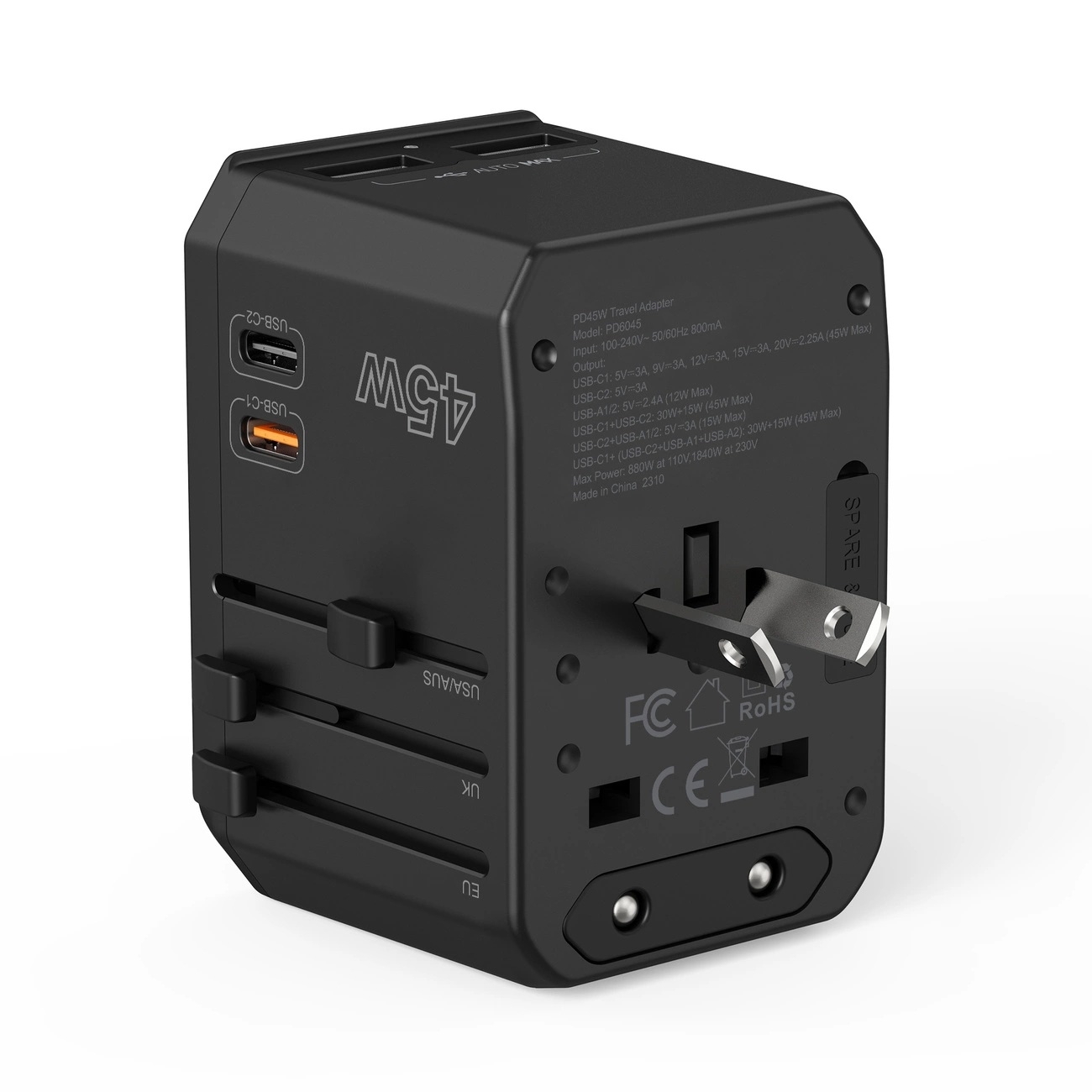 CHOETECH PD6045 GaN Tech 2C+2A 45W Travel Adapter with US EU UK AU Plugs Black