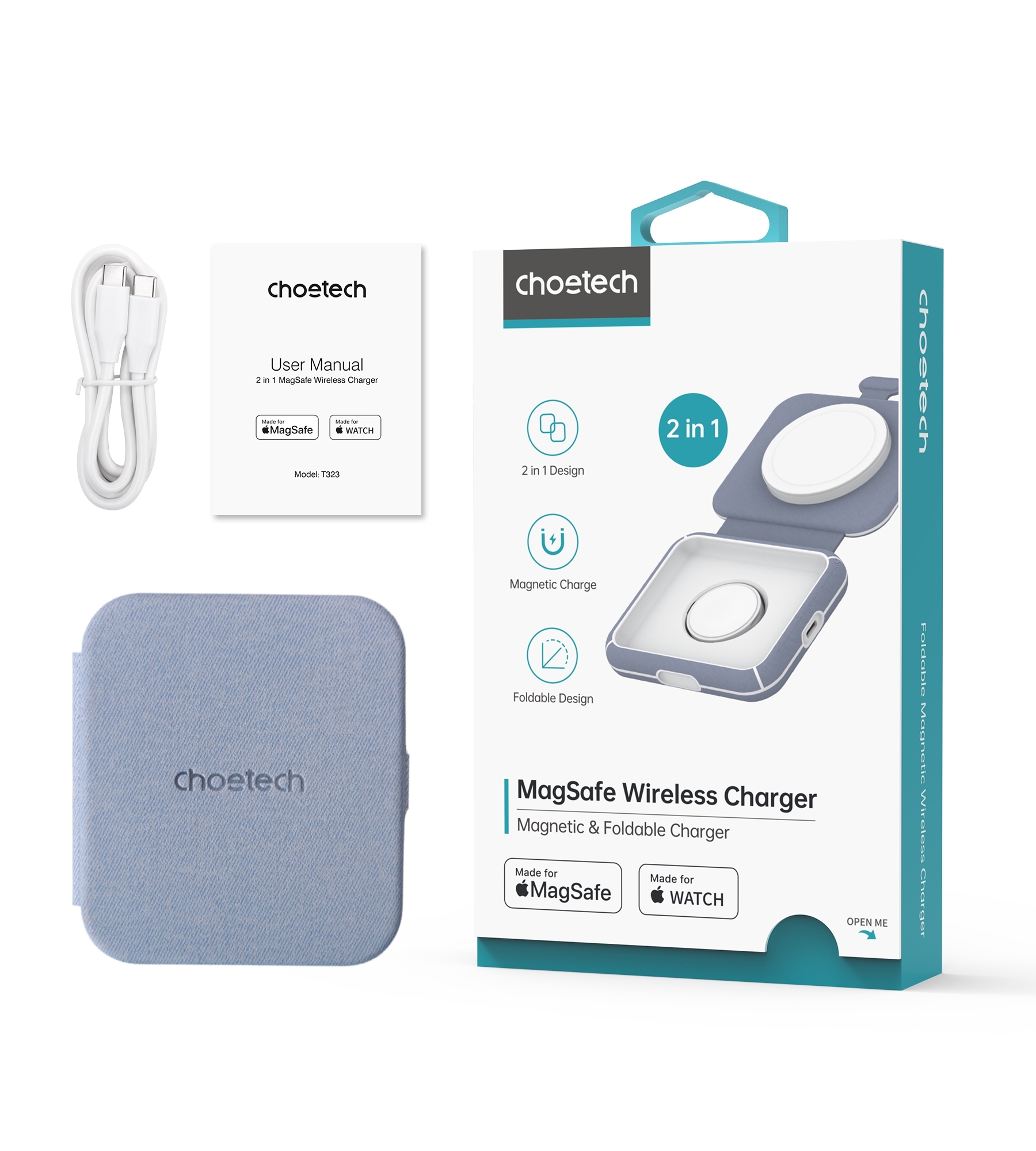 CHOETECH T323 2-in-1 Magsafe&MFI Wireless Charger