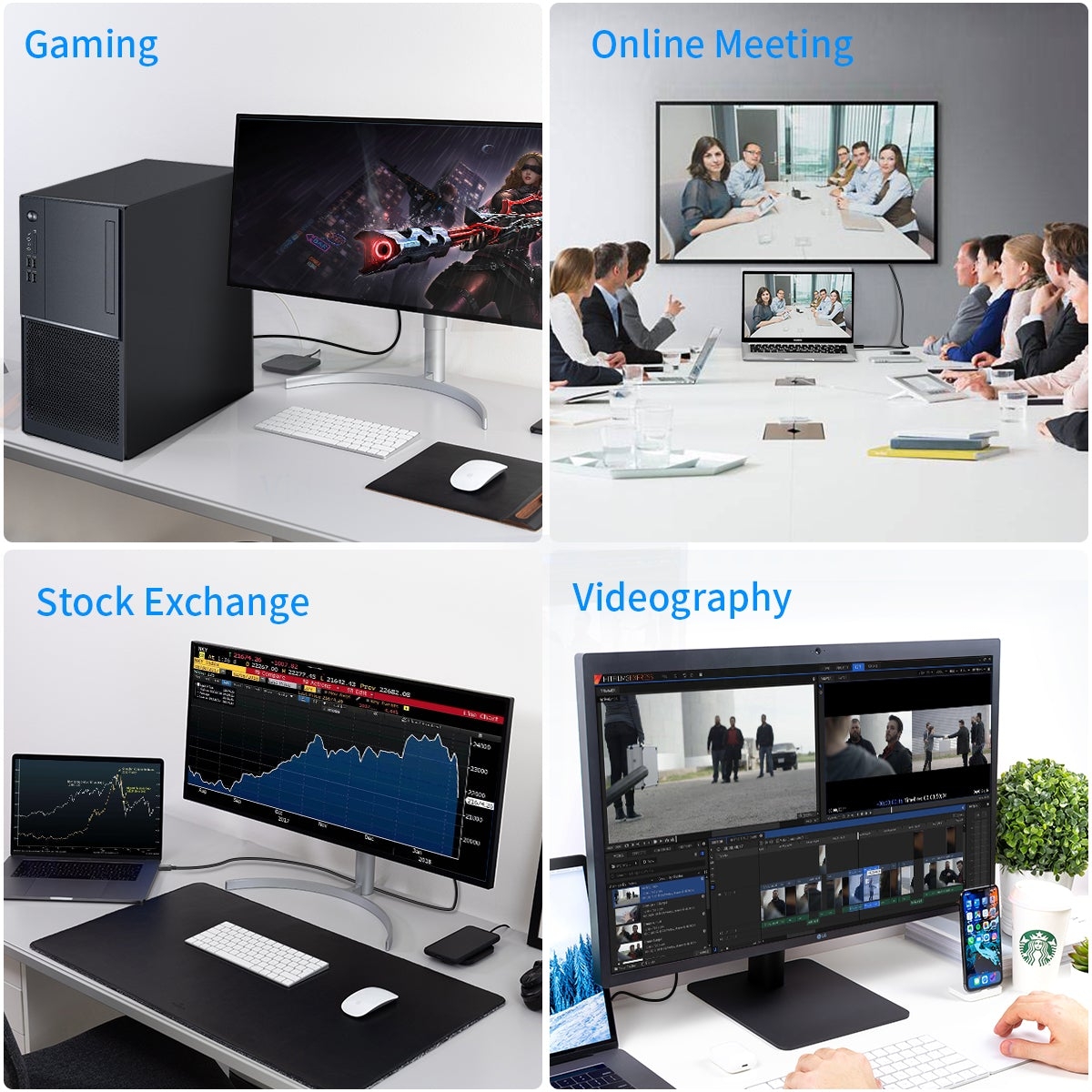 Directly connect a DisplayPort-equipped host, laptop graphics card to the monitor, HDTV, projector for crystal clear audio and high-definition video; support the mirror mode, extended mode multi-stream mode, perfect for home theater, gaming, office, VR experience or the extension of a workstation.