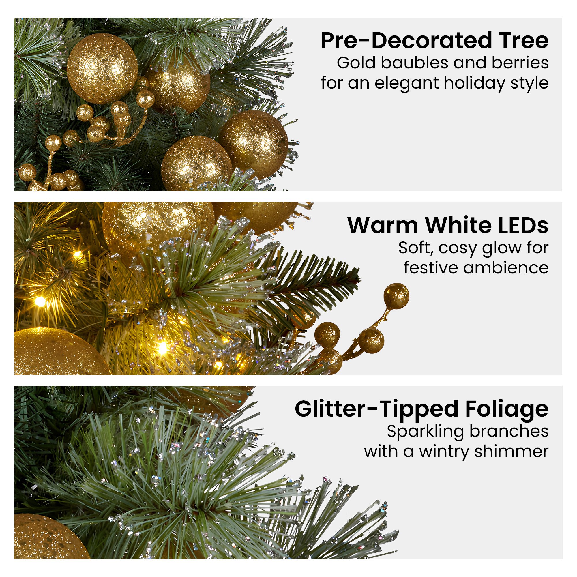 Golden hour hits differently when its on your tabletop. This 61cm tree comes pre-decorated with glitter-tipped foliage, baubles and berries for instant Christmas charm.