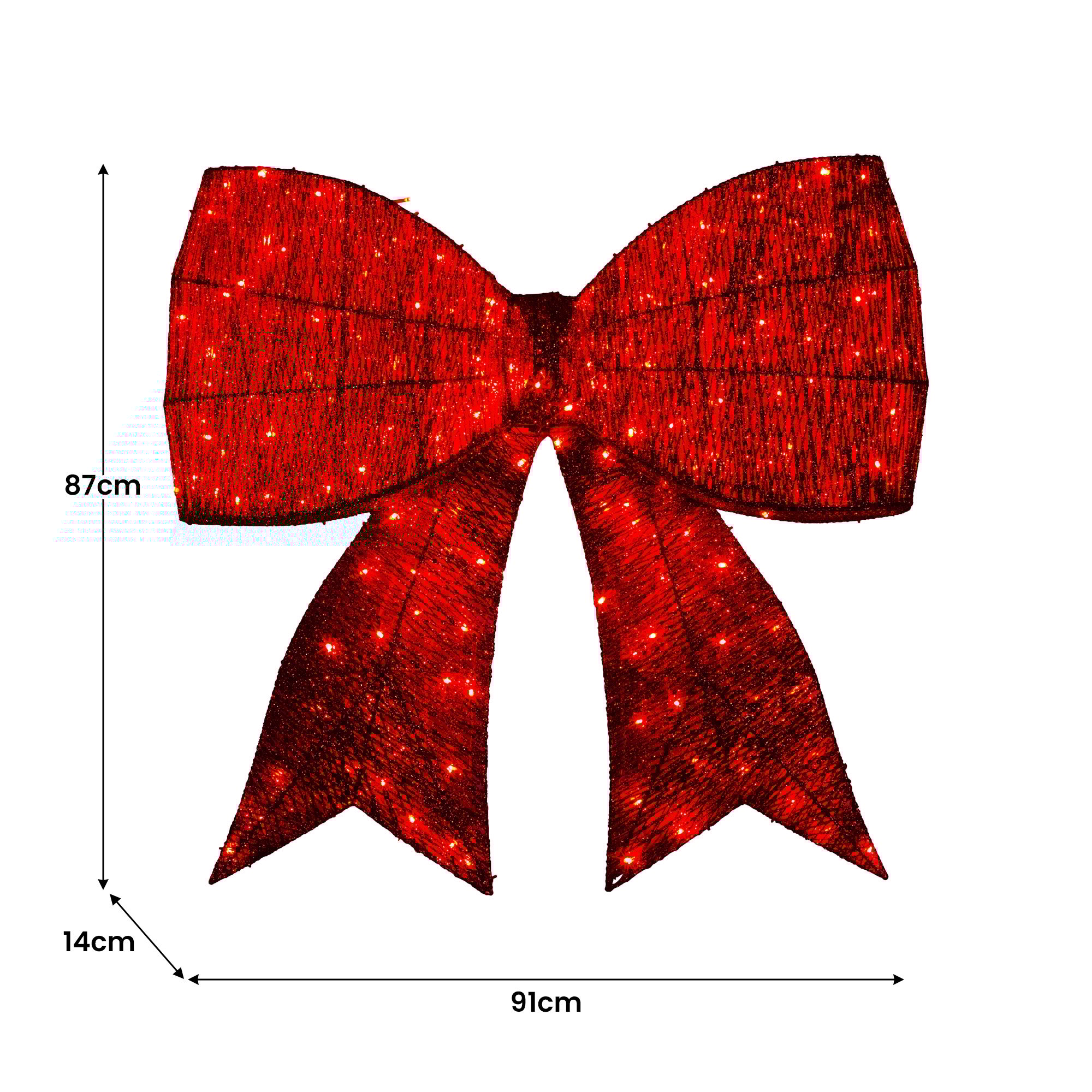 Enhance your displays holiday vibes with this gorgeous Christmas display bow! At 91cm wide, this dazzling electric bow rocks a vibrant red colour and a mix of steady and twinkling red lights with five cool functions for that extra wow factor.