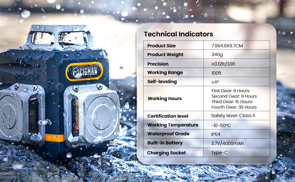 - High Visibility– The green laser level line is 4x brightness than the red beam, which can provide a working distance of up to 100ft, available outdoors. Safety level-Class II, <1mW power output