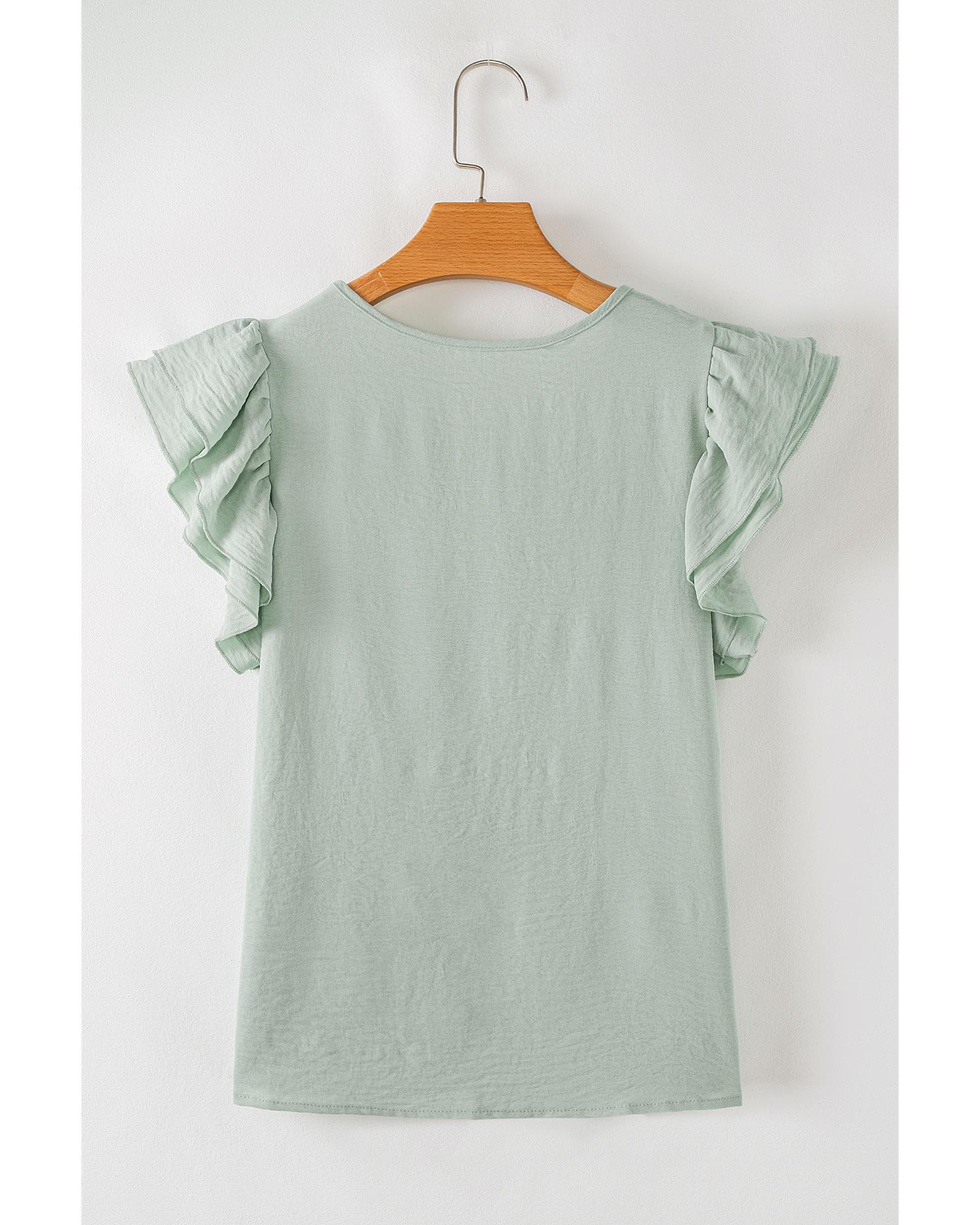 Clearly Aqua Solid Color Ruffled Short Sleeve Casual Blouse – XL