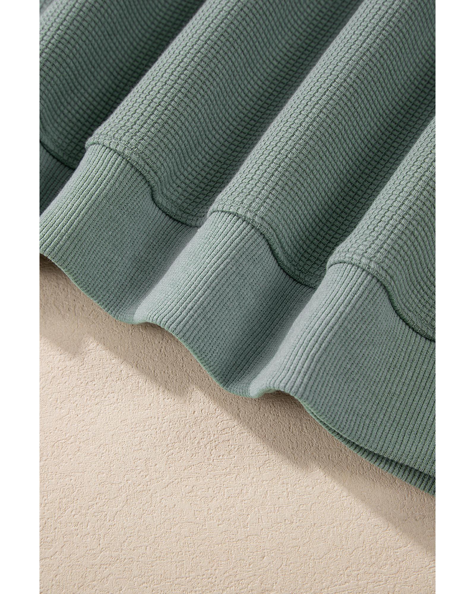 Clearly Aqua Waffle Knit Drop Shoulder V Neck Top – M
