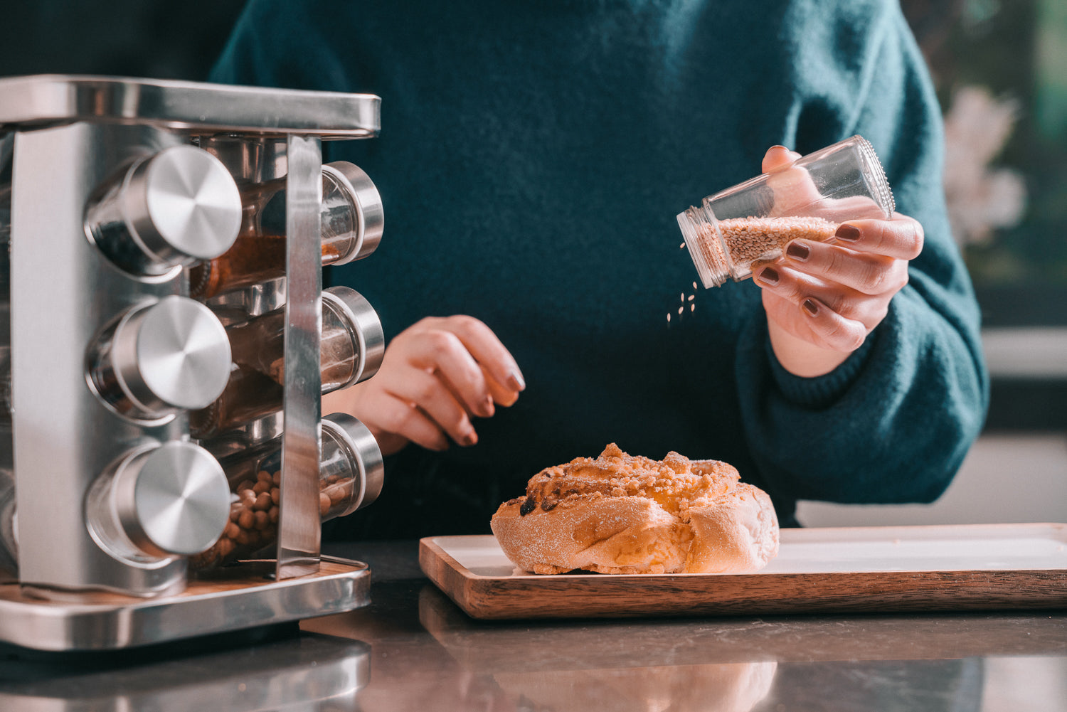 Rediscover the joy of cooking with the Clevinger 16pc rotary spice rack.