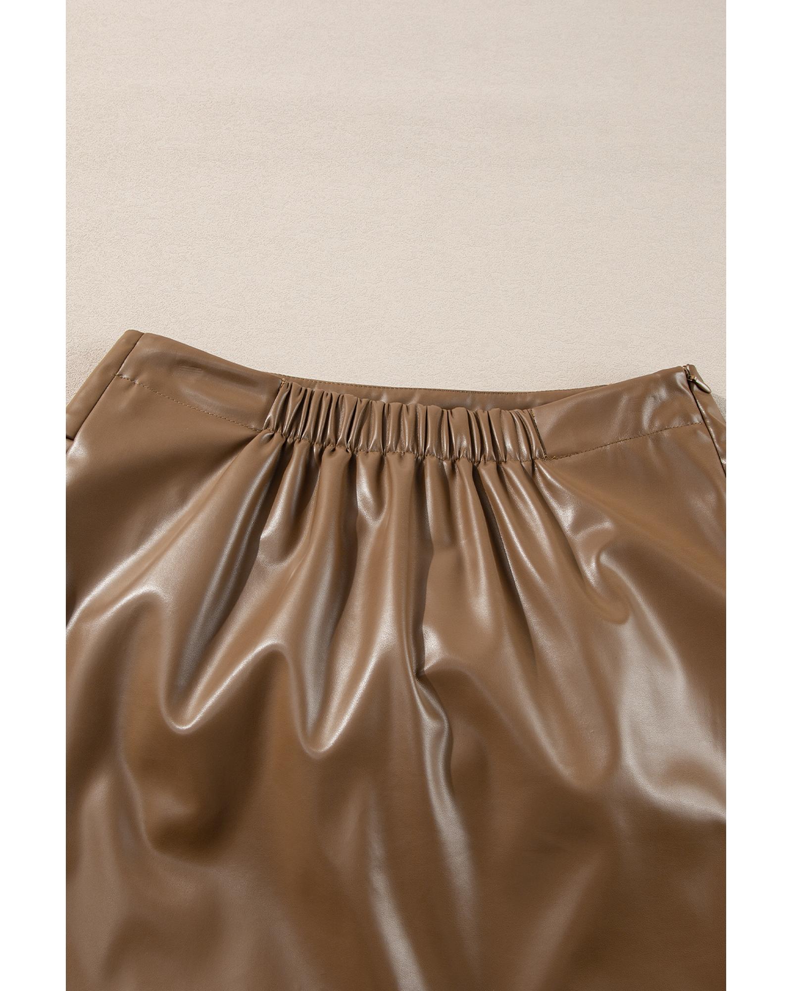 Coffee Bowknot Faux Leather Mini Skirt – L