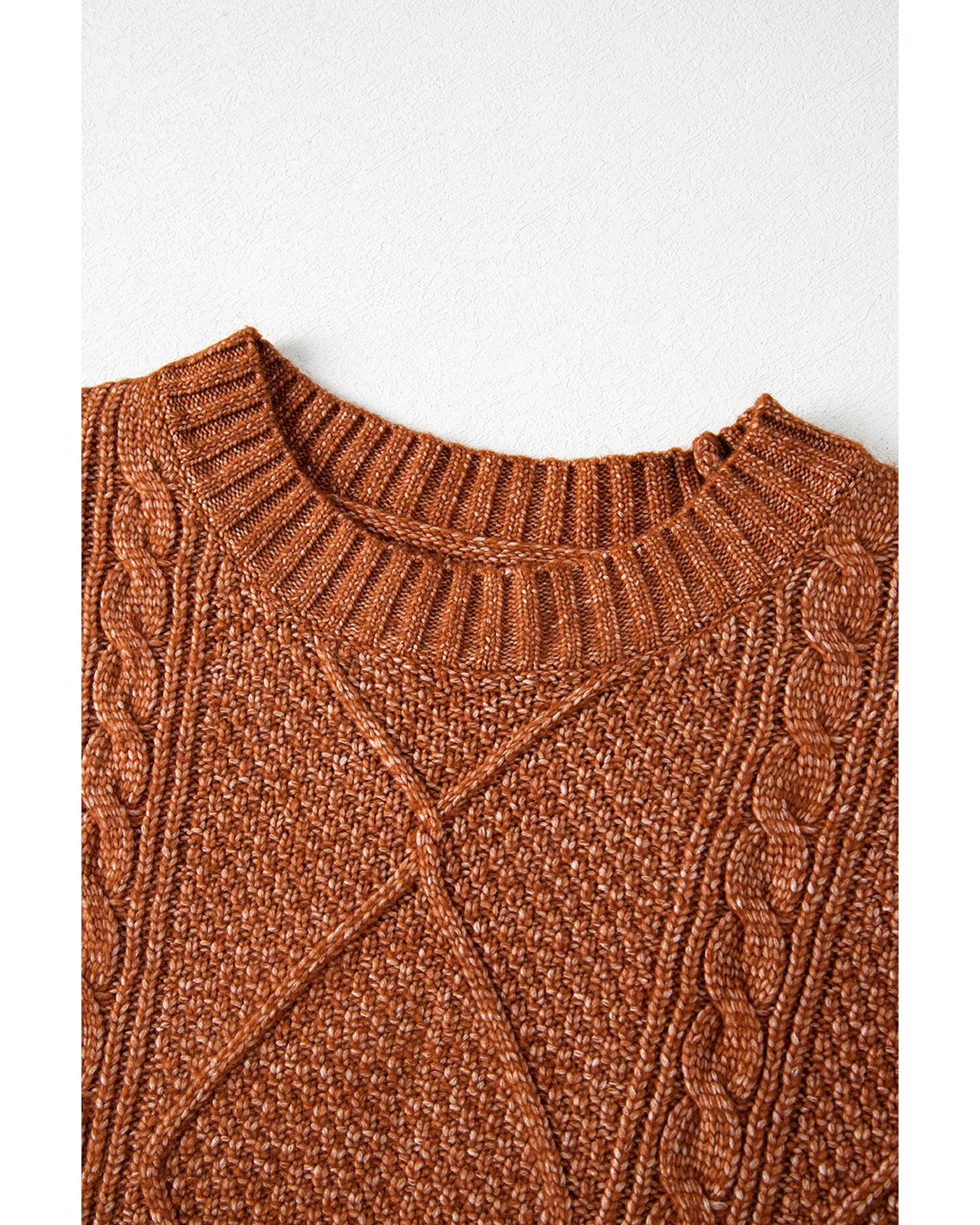 Coffee Cable Knit Drop Shoulder Loose Fit Sweater Dress – XL