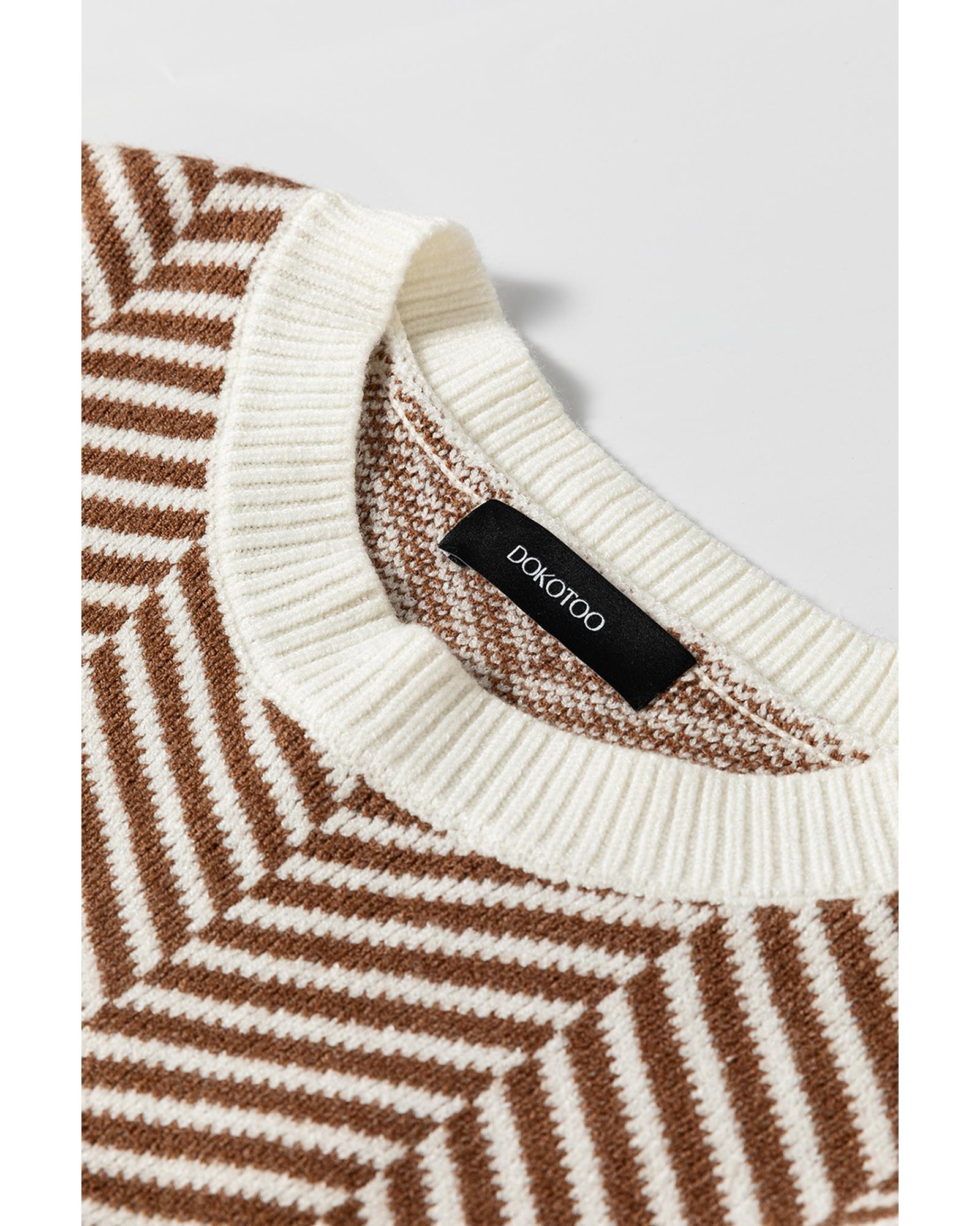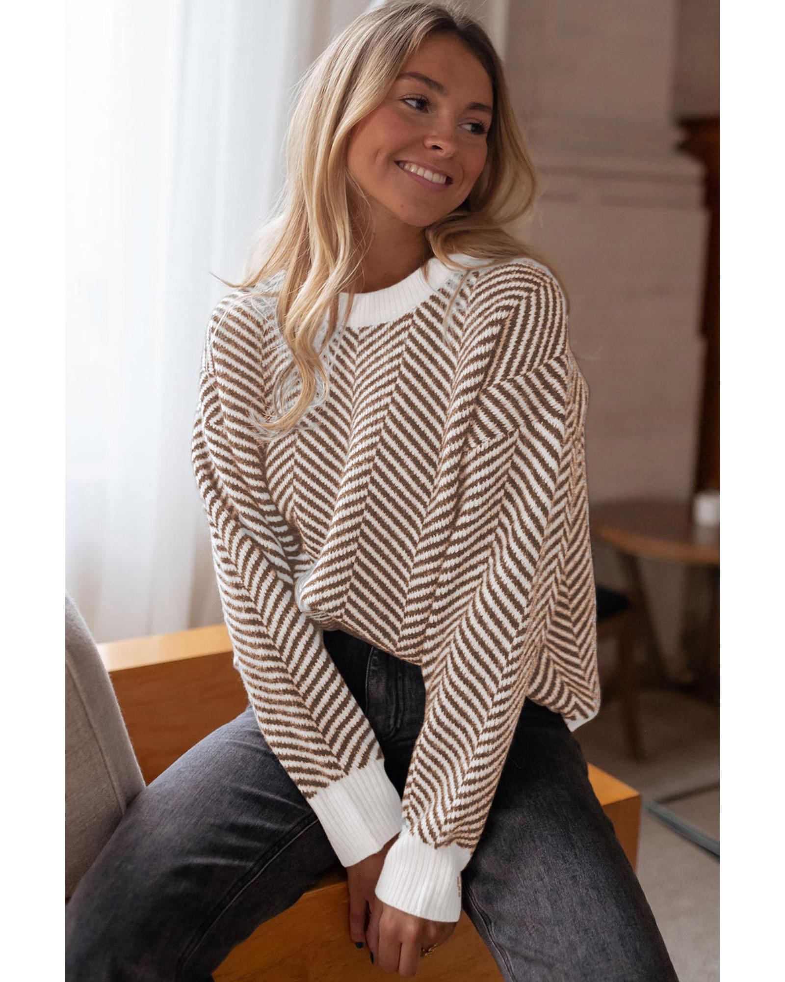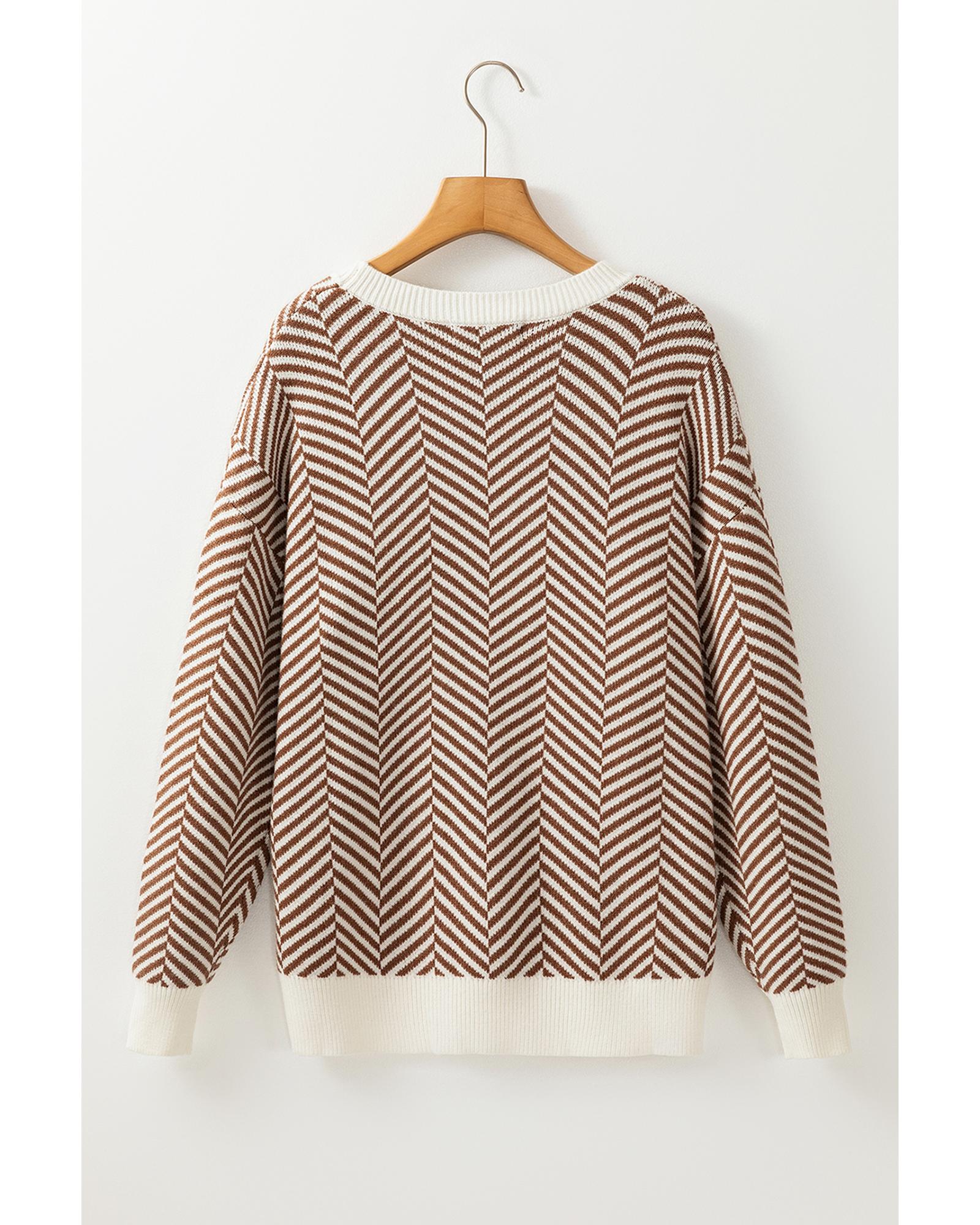 Coffee Contrast Edge Crew Neck Drop Shoulder Sweater – 2XL