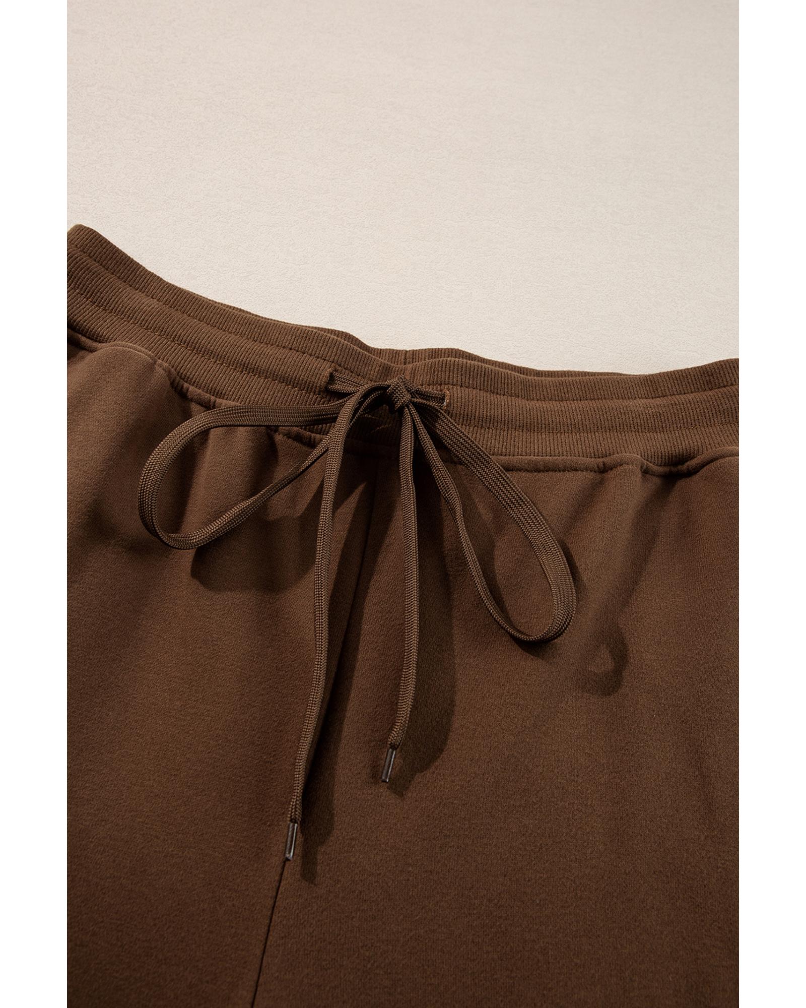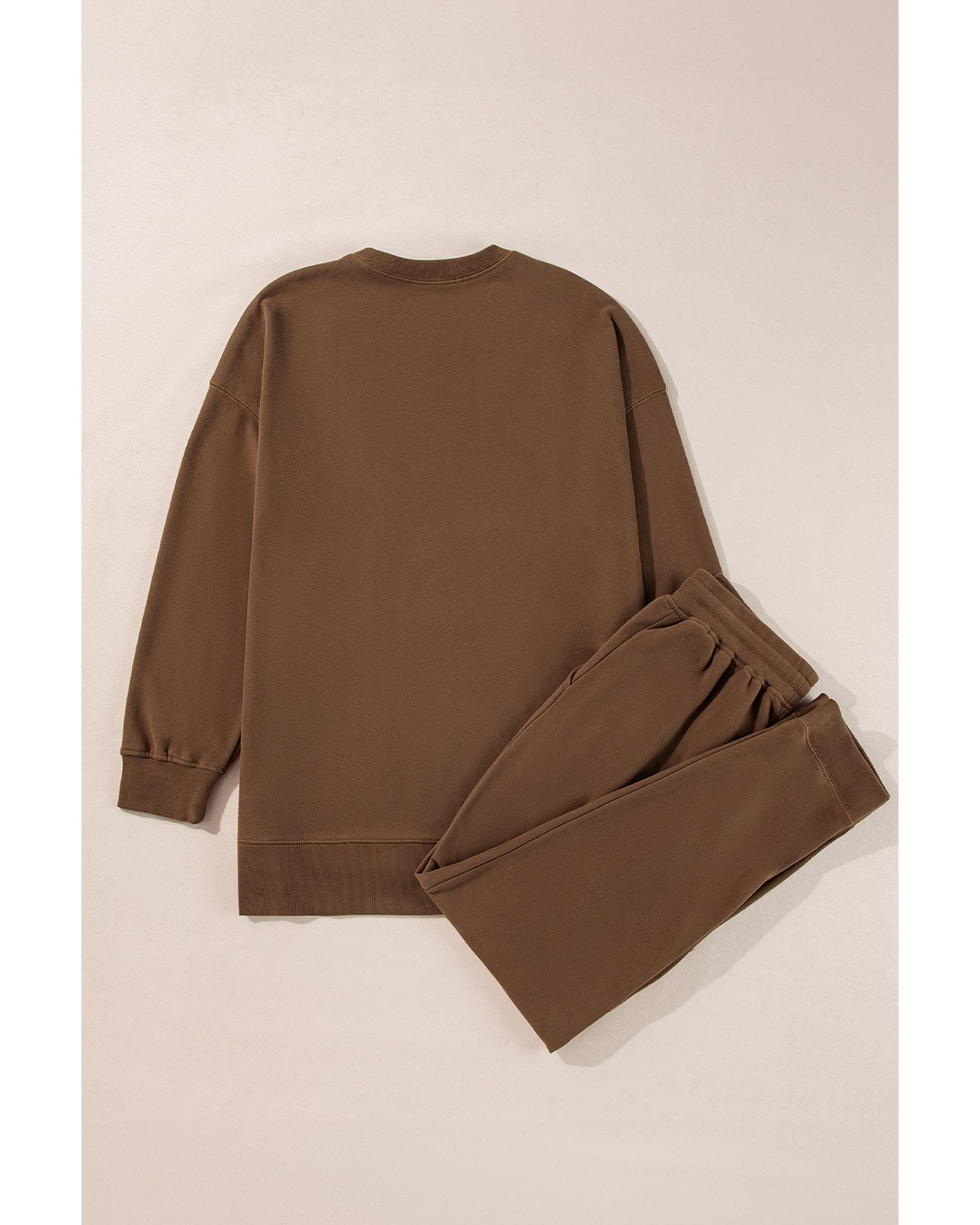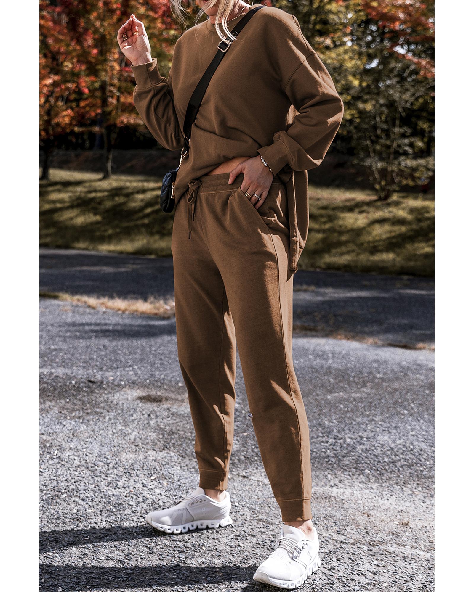 Coffee Solid Color High Low Pullover and Skinny Pants Set – S