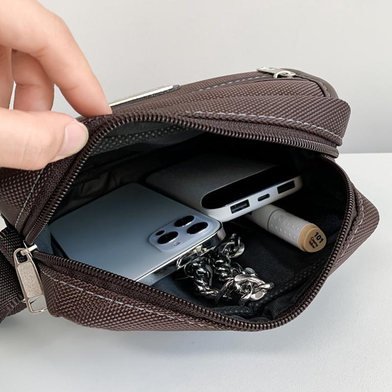Compact Black Oxford Shoulder Crossbody Backpack With Single Strap For Men – Brown Small