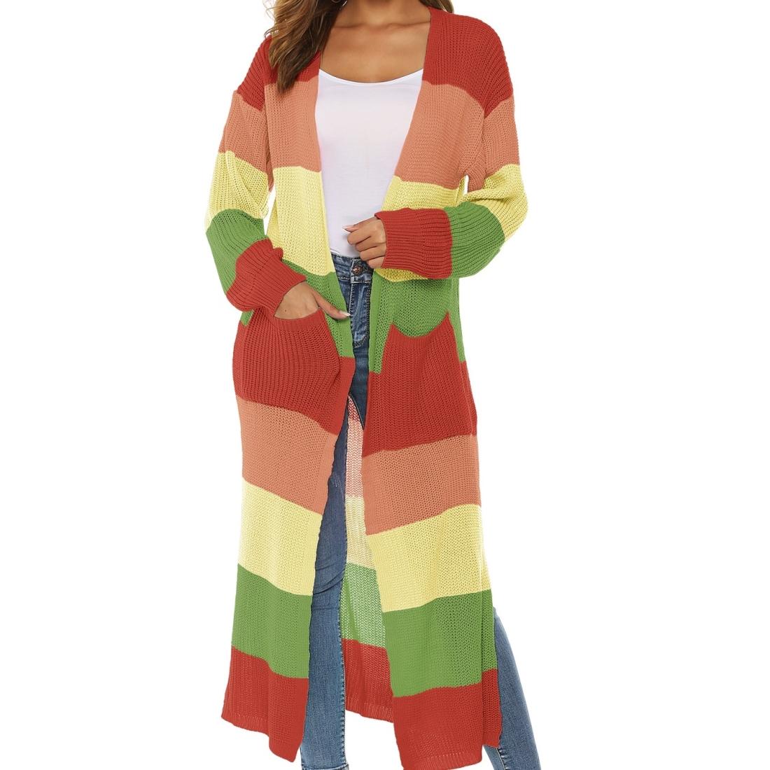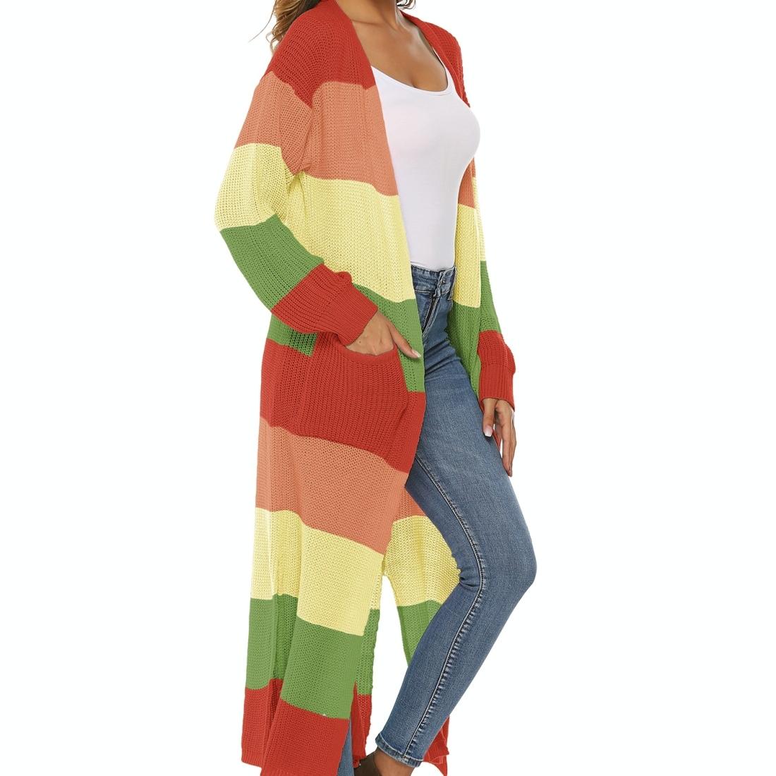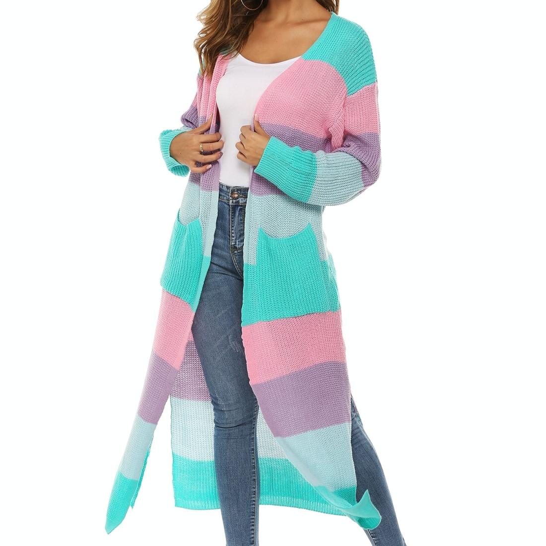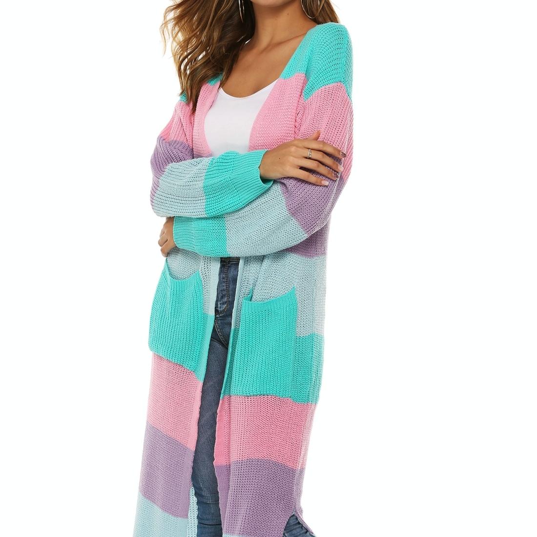 Contrast Striped Knit Sweater Blue Pink – L – Blue Pink S
