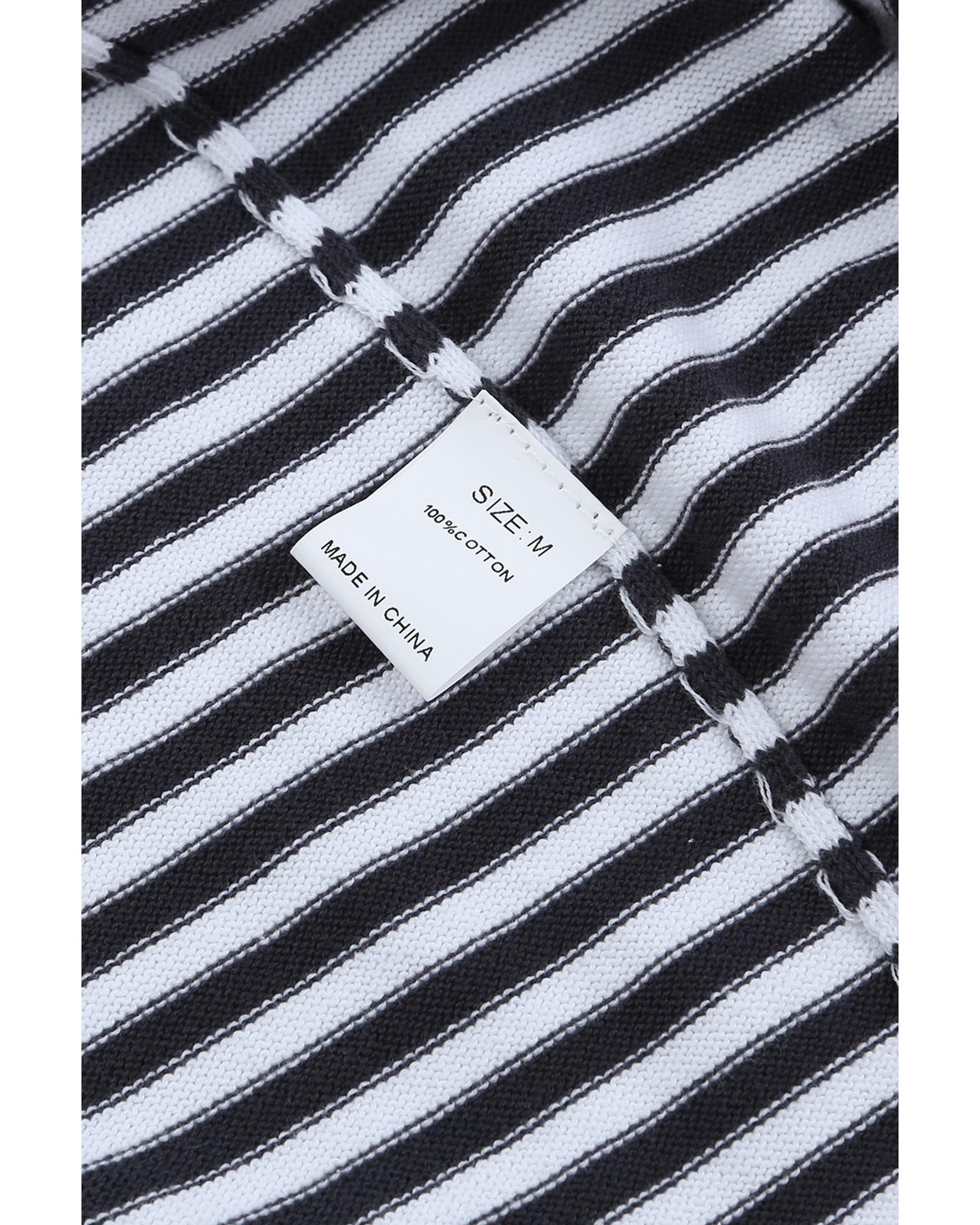 Contrast Trimmed Striped Drop Shoulder Sweater – M