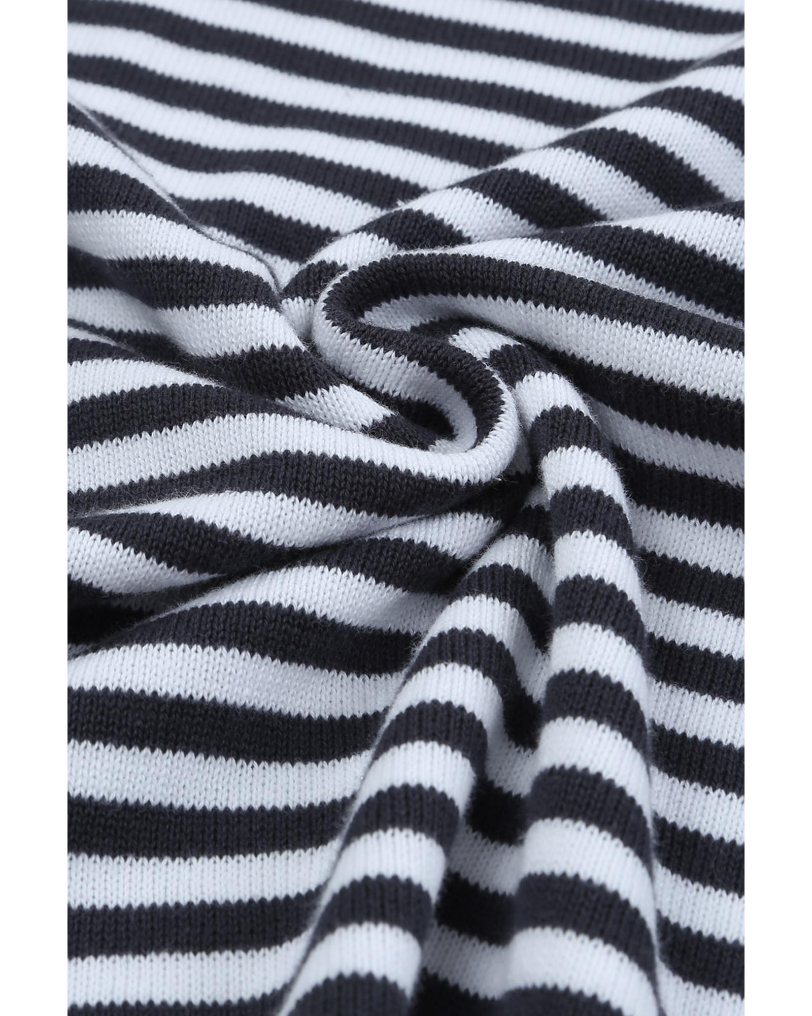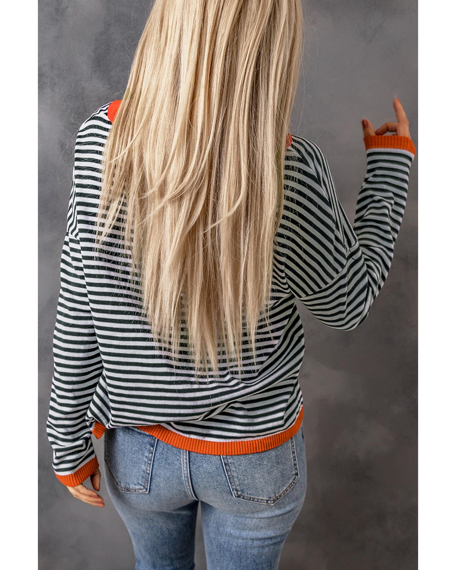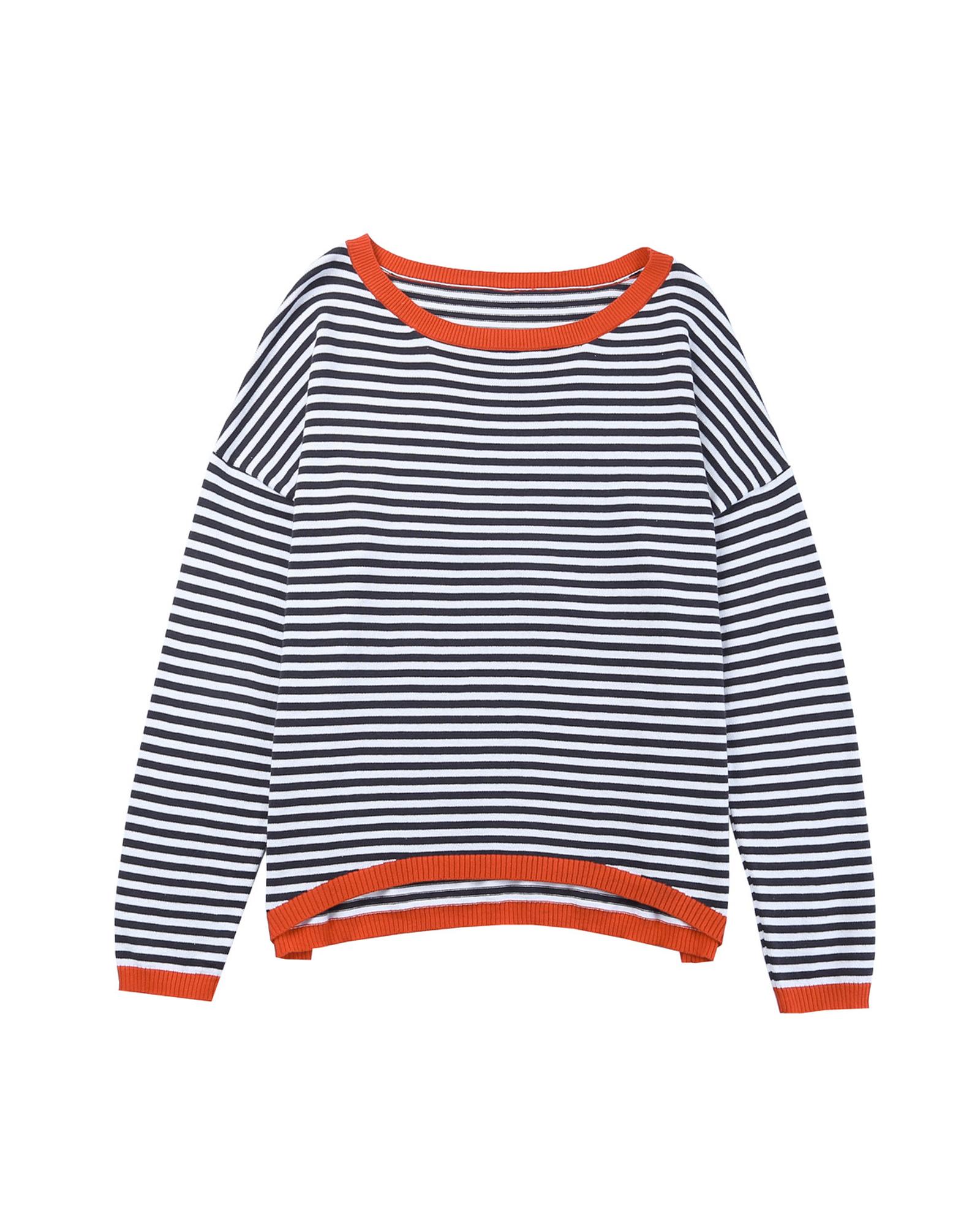 Contrast Trimmed Striped Drop Shoulder Sweater – S