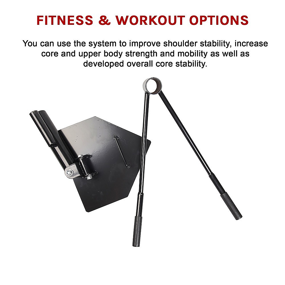Our Fitness Training Gym has a cutting-edge design. It provides an innovative approach to functional strengthening through its torso rotation training. Simple to use, you begin by merely inserting the end of a barbell into the sleeve. With its unique multi-directional swivel, you are then poised to complete a variety of rotation reps including shrugs, choppers, one-arm rows and one-arm dead lifts to name just a few. To increase resistance, more weights can be added as required.