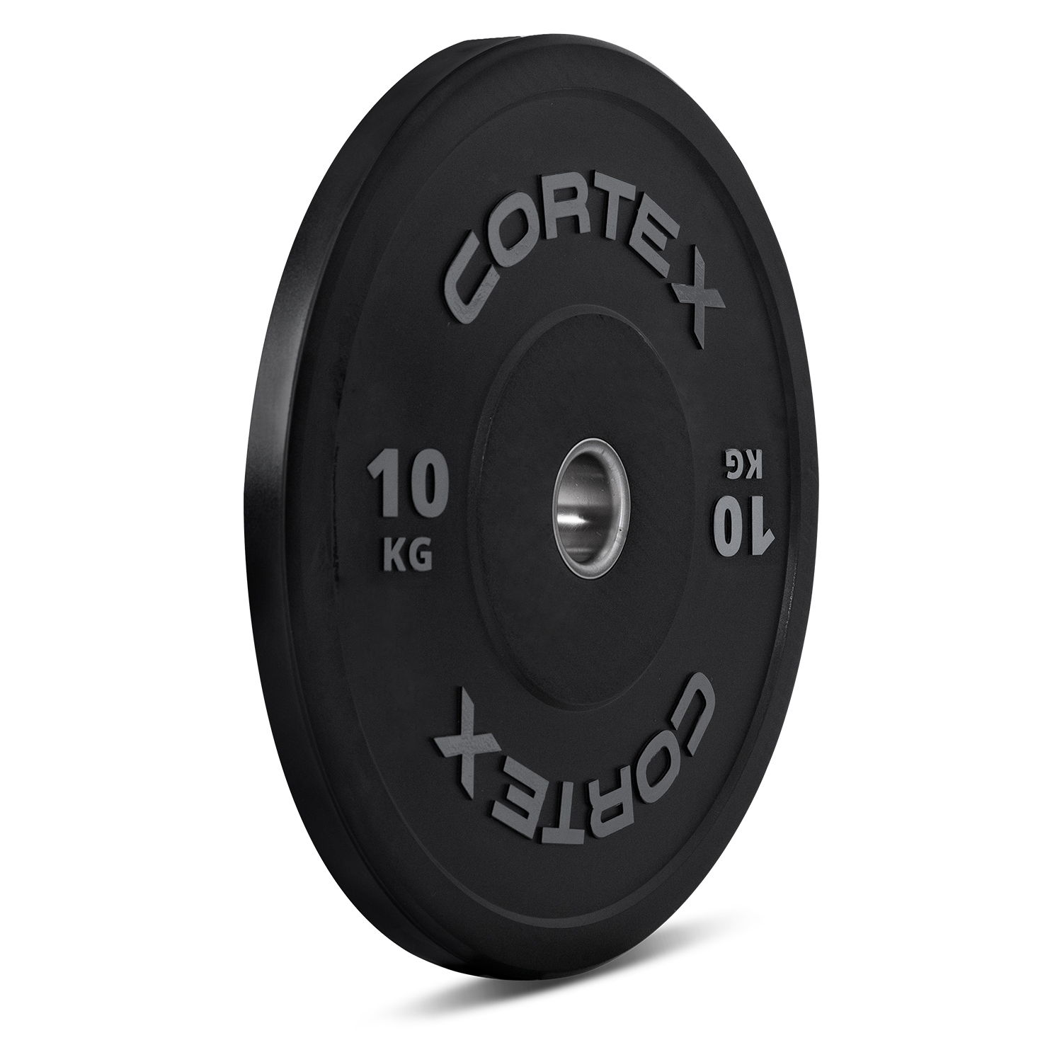 Our CORTEX 10kg Black Series V2 Rubber Olympic Bumper Plates are engineered for serious functional fitness use, Olympic lifting and Cross Fit training. The heavy-duty rubber surface is scratch resistant and designed to withstand high impact lifts. The grooved edges allow for better handling with the steel core offering seamless loading onto the barbell.