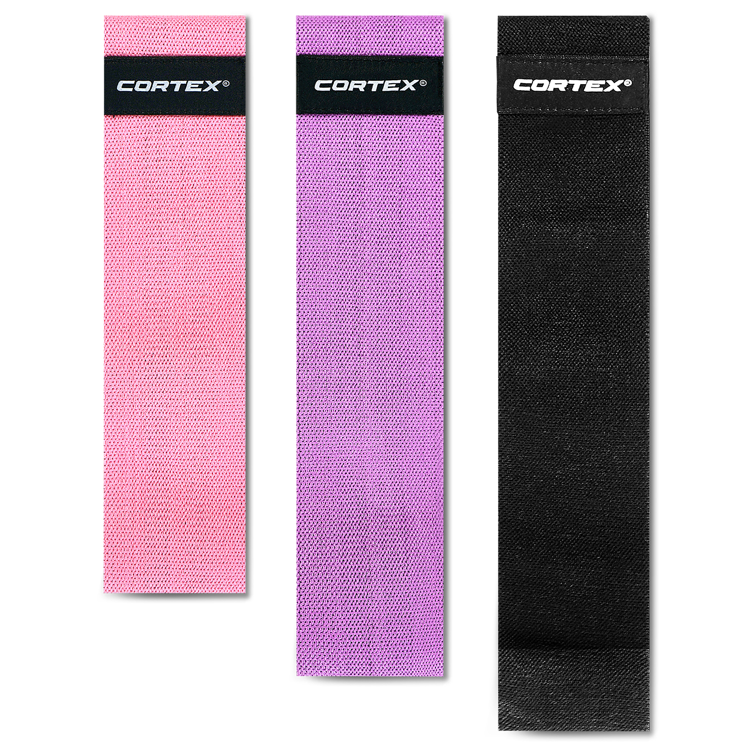 Experience exceptional resistance and quality with our CORTEX FibraBands. Our Fabric Premium Resistance Bands come in a pack of 3 bands with differing strength levels � adding variety to every workout with the possibility of over 20 workouts. Our premium non-slip fabric allows full control and comfort during your training sessions.