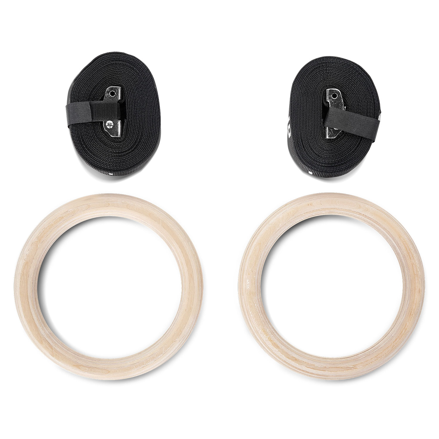 Gym Rings provide workouts beyond free weights or cable weights, with balance based body weight exercises that will work your smaller, stabilising muscles and core. Excellent for building strength and control. Our wooden Gym Rings are carefully crafted to provide a smooth finish, and offers a greater grip than plastic rings.These rings are built to the International Gymnastics Federation (FIG) specifications for competition gym rings so you know you�re getting a quality product.