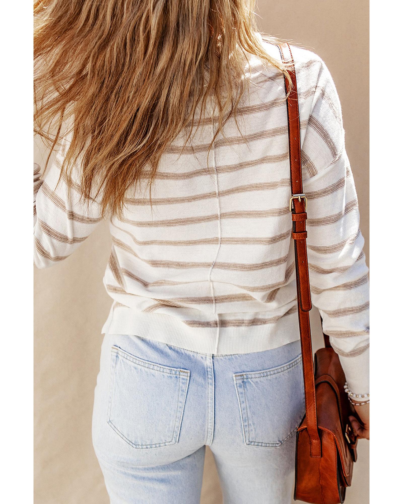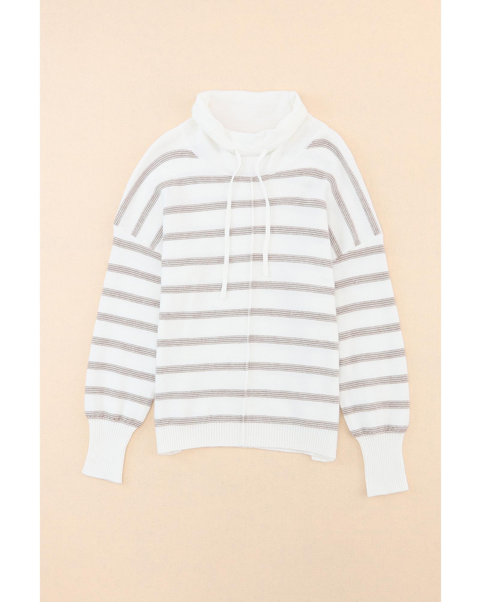 Cowl Neck Striped Print Drop Shoulder Sweater – XL