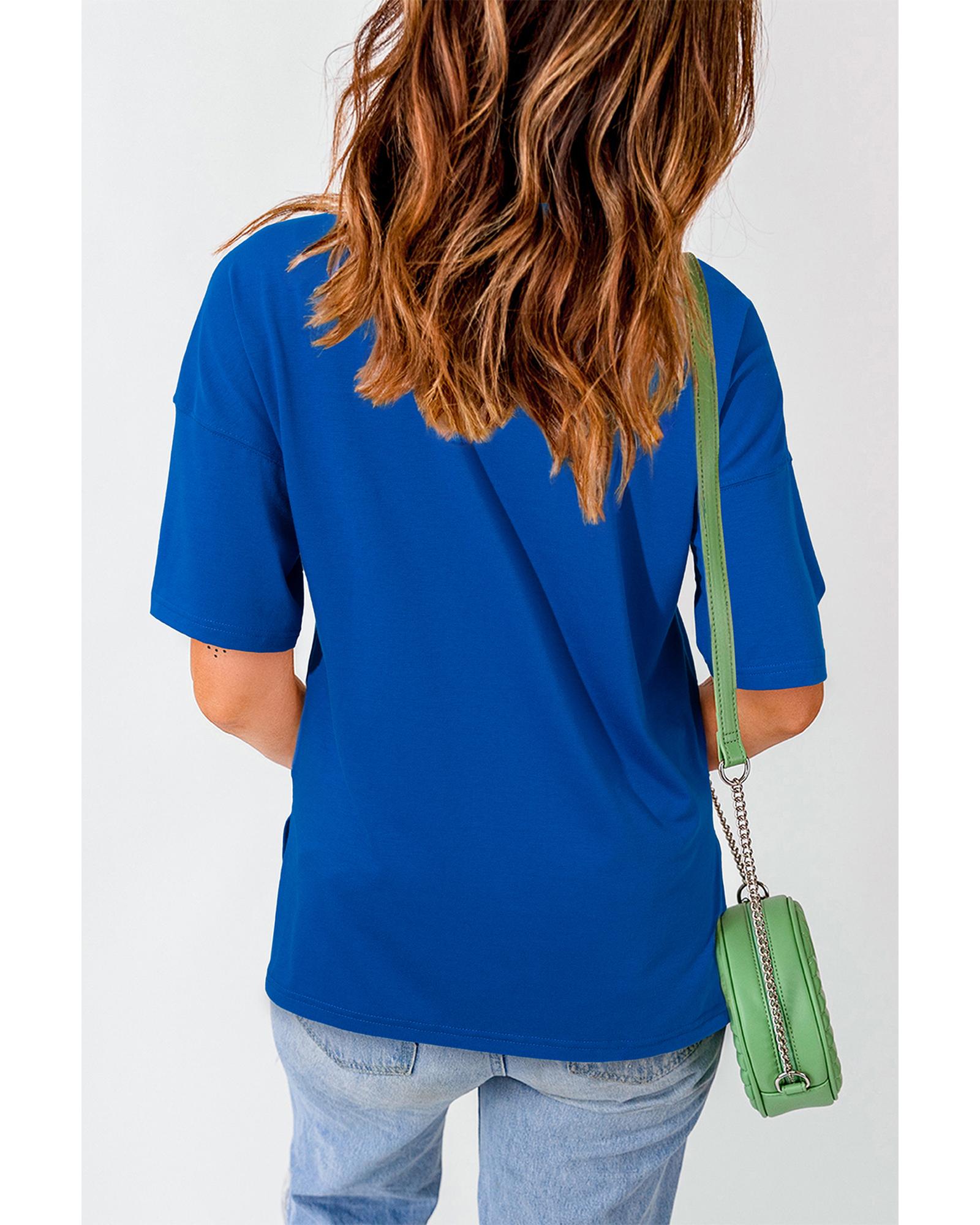 Dark Blue Contrast America Graphic Drop Shoulder Tee – L