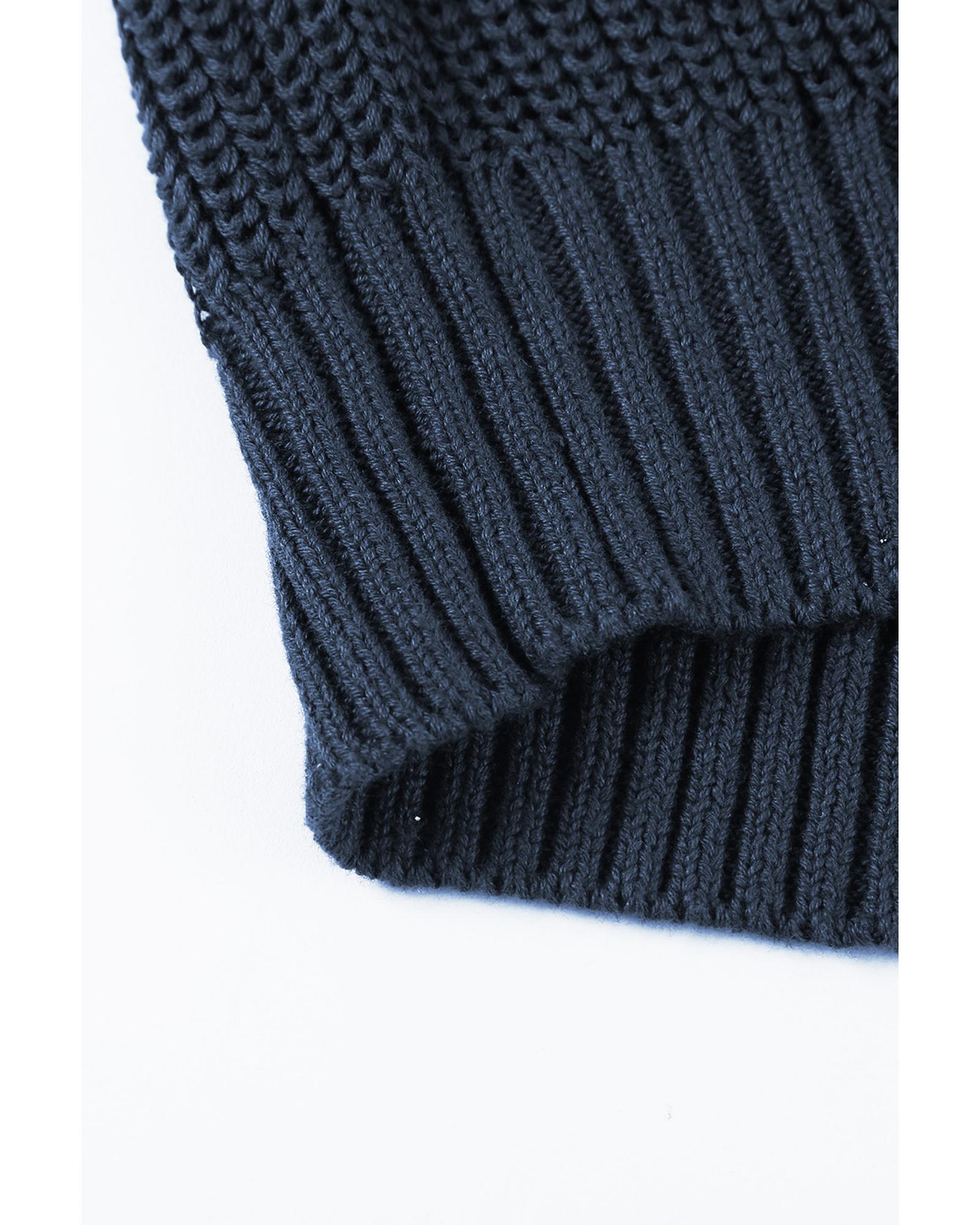 Black Eyelet Pattern Detail V Neck Drop Shoulder Sweater - M