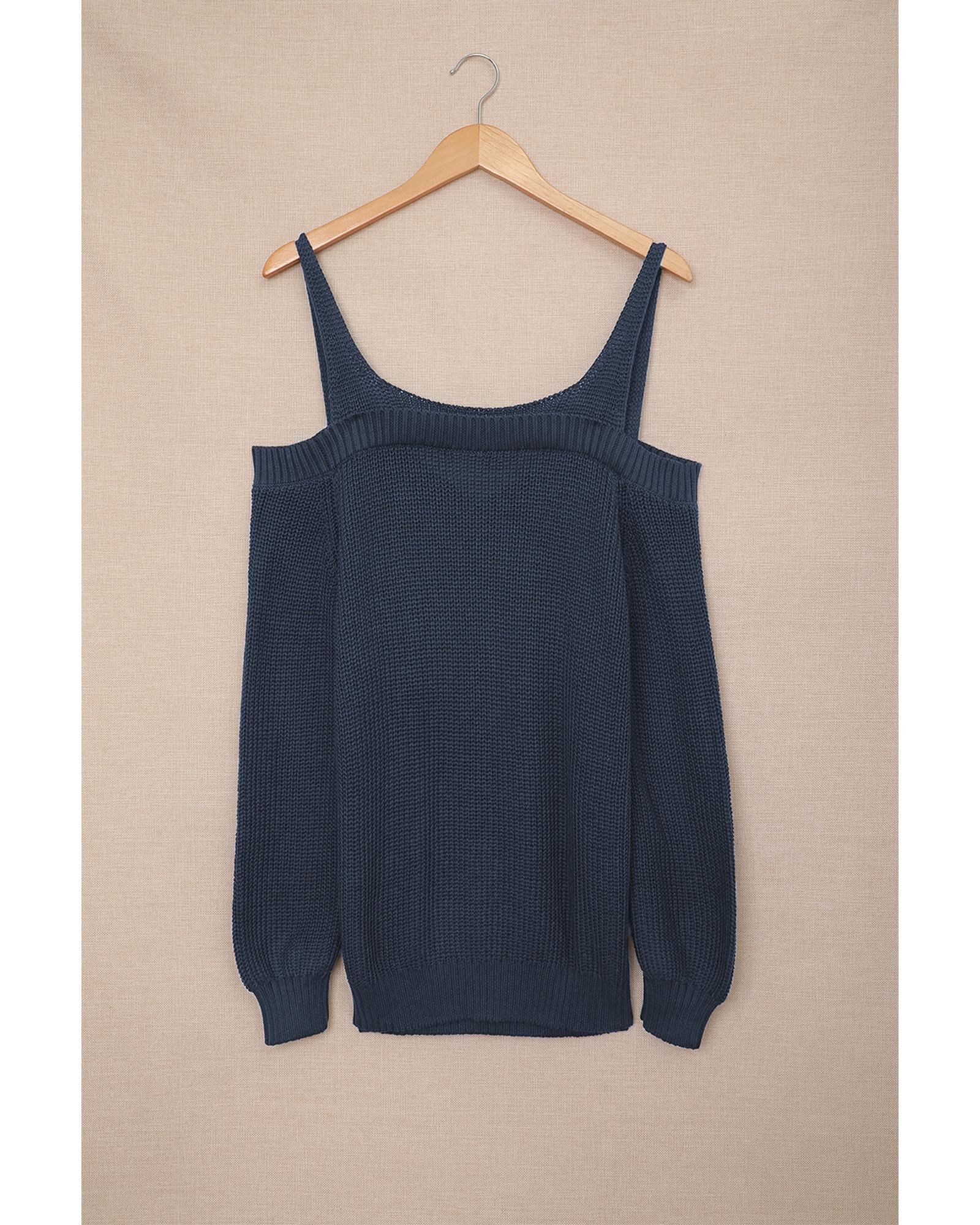 Dark Blue Dew Shoulder Juliette Knitted Sweater – M