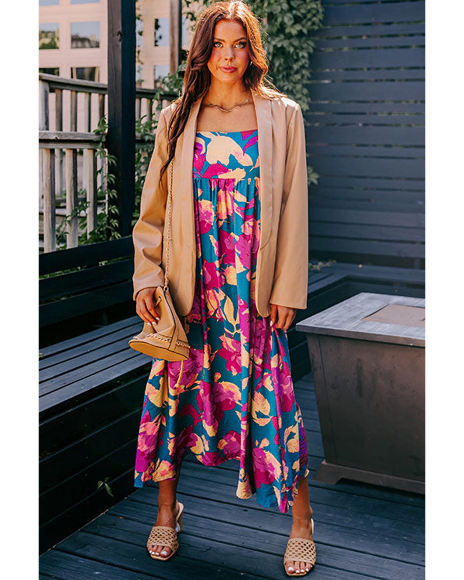 Azura Exchange Multicolor Boho Floral Collared Long Sleeve Ruffled Dress - M
