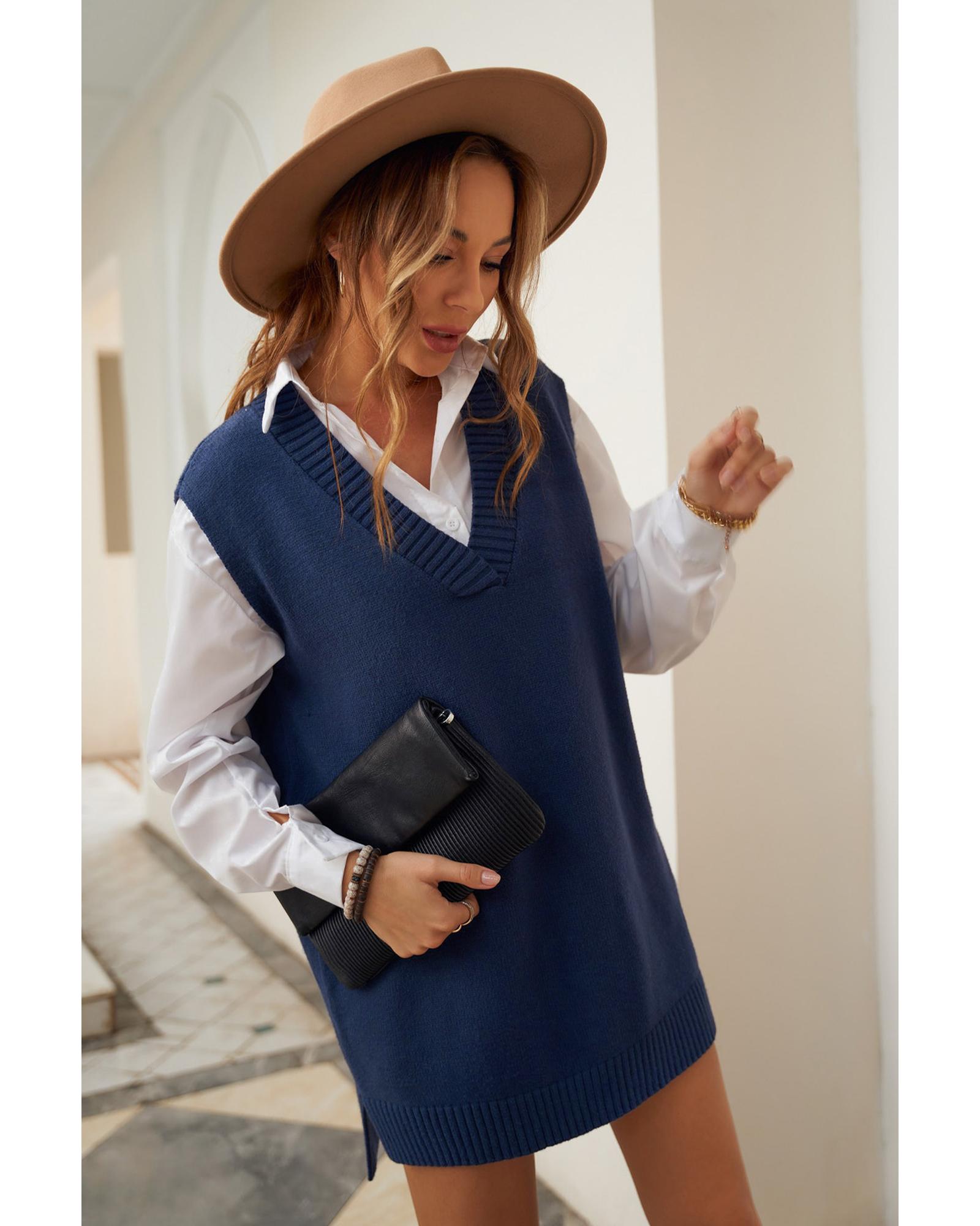 - Stylish and comfortable Dark Blue Knit Vest Pullover Sweater