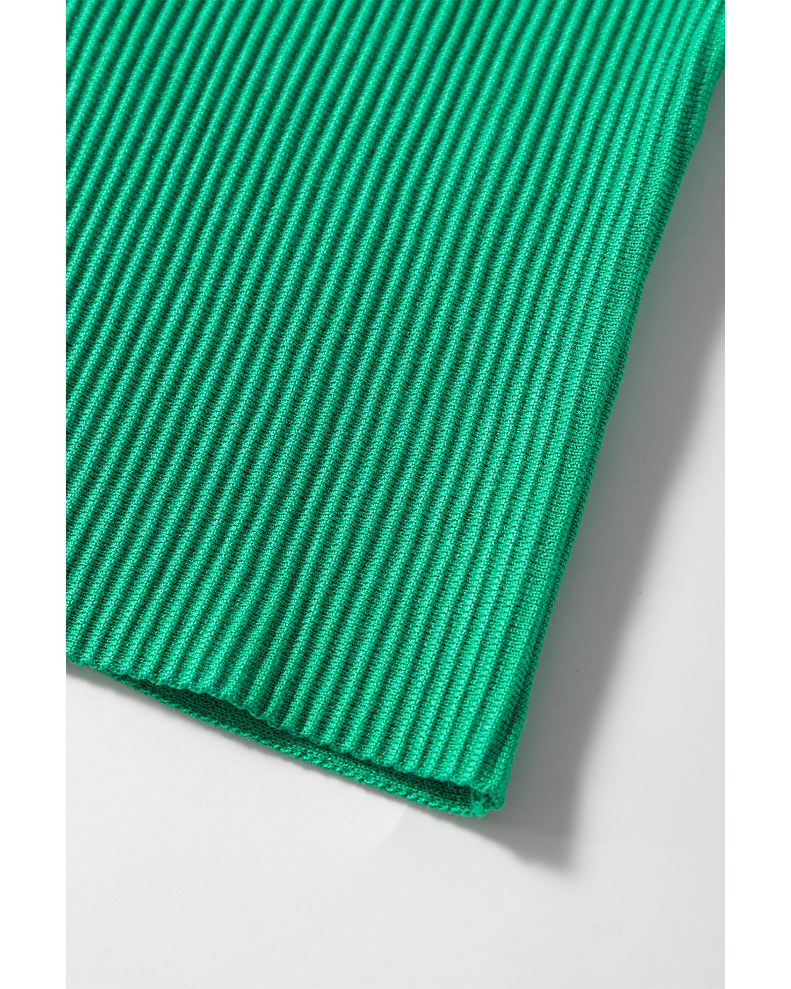 Dark Green Ribbed Criss Cross Halter Neck Sheath Sweater Tank Top – L